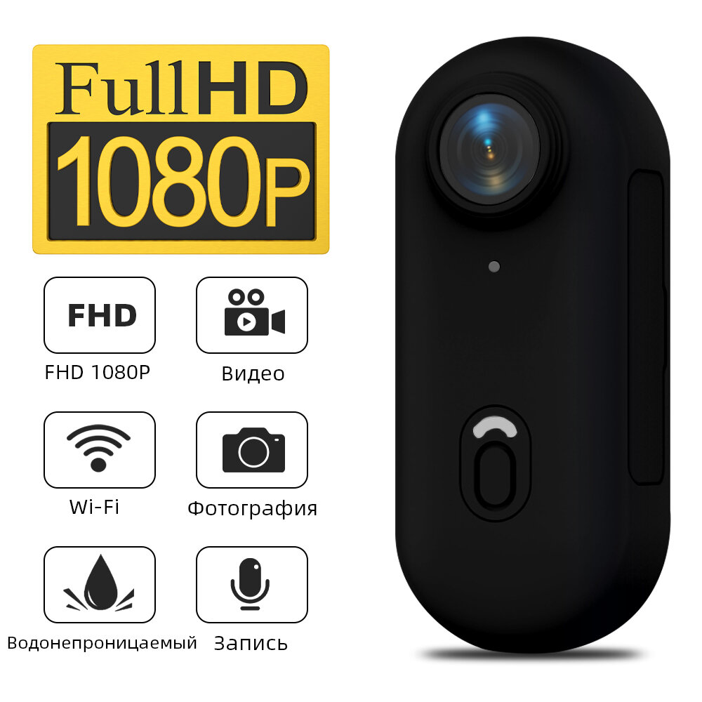 Размер большого пальца: Размер нашей 1080P камеры для тела составляет 64,5 х 28 х 20 мм. В комплект входит магнитный кулон, страховочный шнур, портативная задняя клипса, которую можно повесить на тело и легко установить в любом месте для записи. Благодаря магнитному дизайну и набору удобных аксессуаров, эта экшн-камера может получить больше творческих и съемочных ракурсов, чем другие камеры