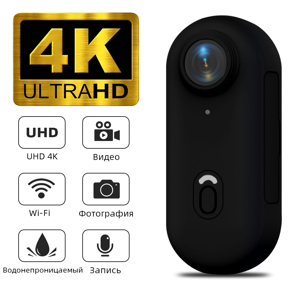 Размер большого пальца: Размер нашей 4K камеры для тела составляет 64,5 х 28 х 20 мм. В комплект входит магнитный кулон, страховочный шнур, портативная задняя клипса, которую можно повесить на тело и легко установить в любом месте для записи. Благодаря магнитному дизайну и набору удобных аксессуаров, эта экшн-камера может получить больше творческих и съемочных ракурсов, чем другие камеры