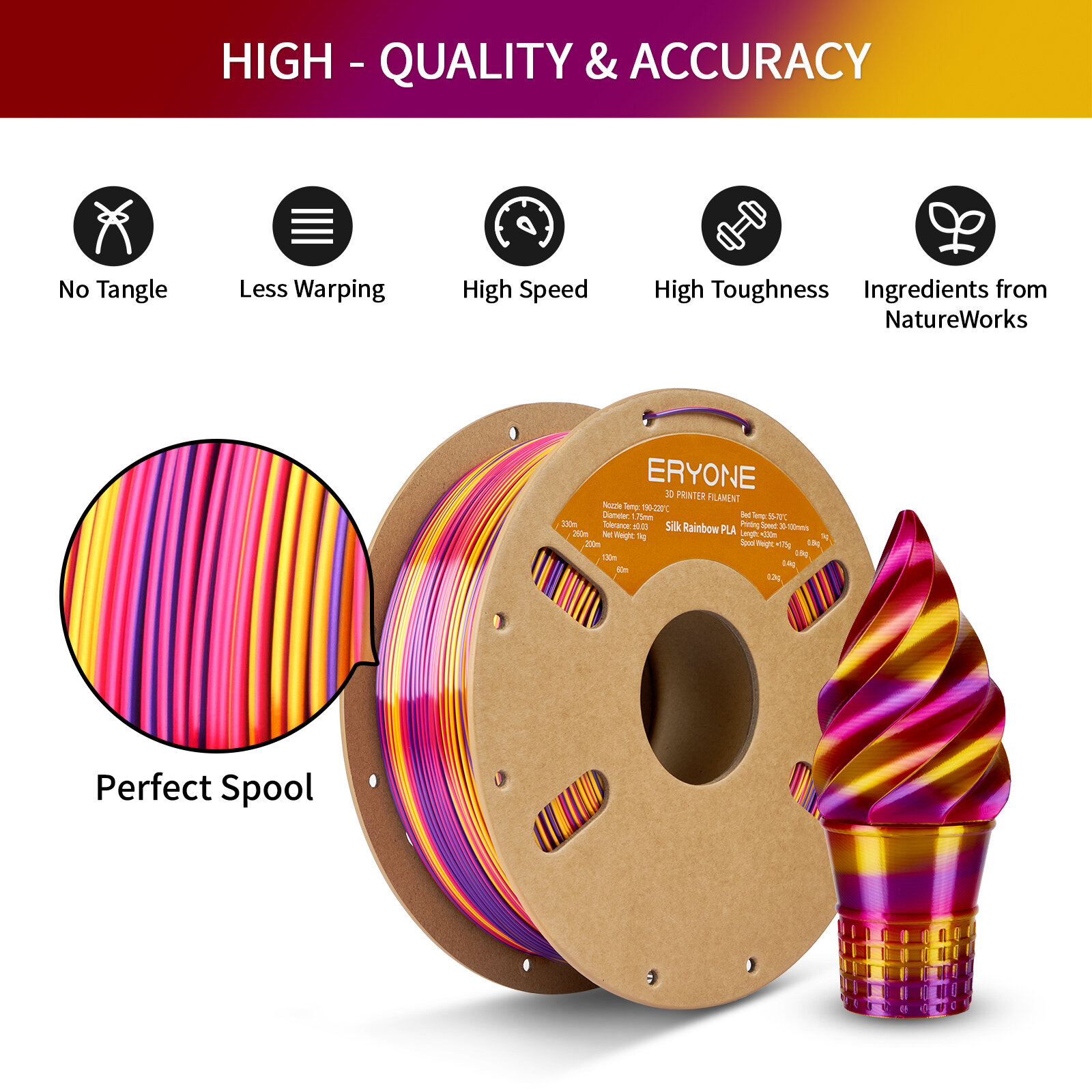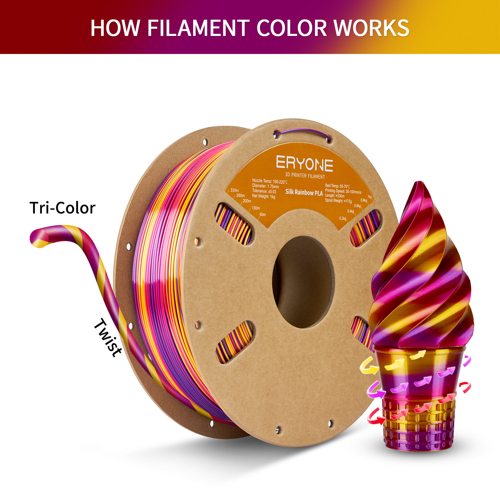 Новинка! PLA пластик (филамент) для 3D принтера Eryone Tri Color Rainbow инферно 1,75 мм 1 кг: сравнение цен, характеристики, фото, актуальное наличие и цены.