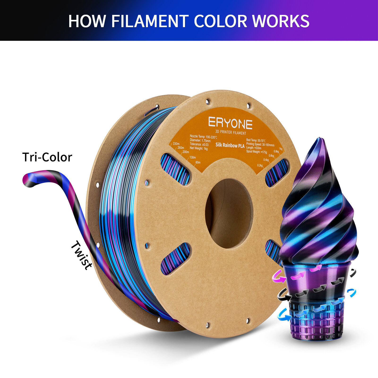 Новинка! PLA пластик (филамент) для 3D принтера Eryone Tri Color Rainbow обсидиан 1,75 мм 1 кг: сравнение цен, характеристики, фото, актуальное наличие и цены.