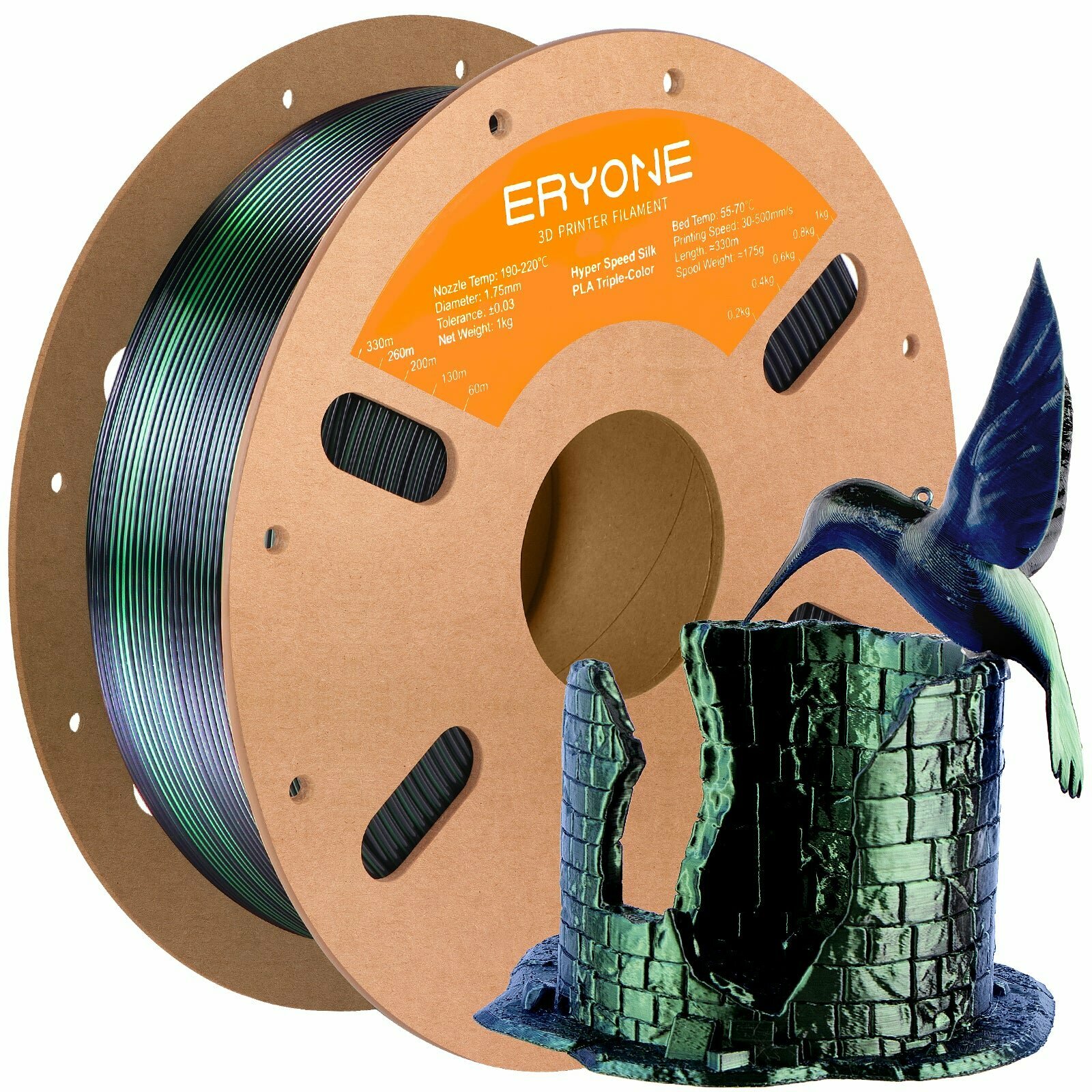 Новинка! PLA пластик трёхцветный Eryone TripleColor зеленый — синий — черный 1,75 мм 1 кг: сравнение цен, характеристики, фото, актуальное наличие и цены.