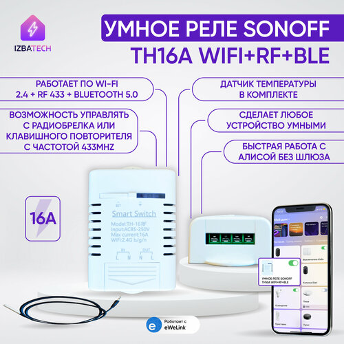 Умное реле Wi-Fi + BLE, с датчиком температуры, 85-250V, 20А, для умного дома: сравнение цен, характеристики, фото, актуальное наличие и цены.