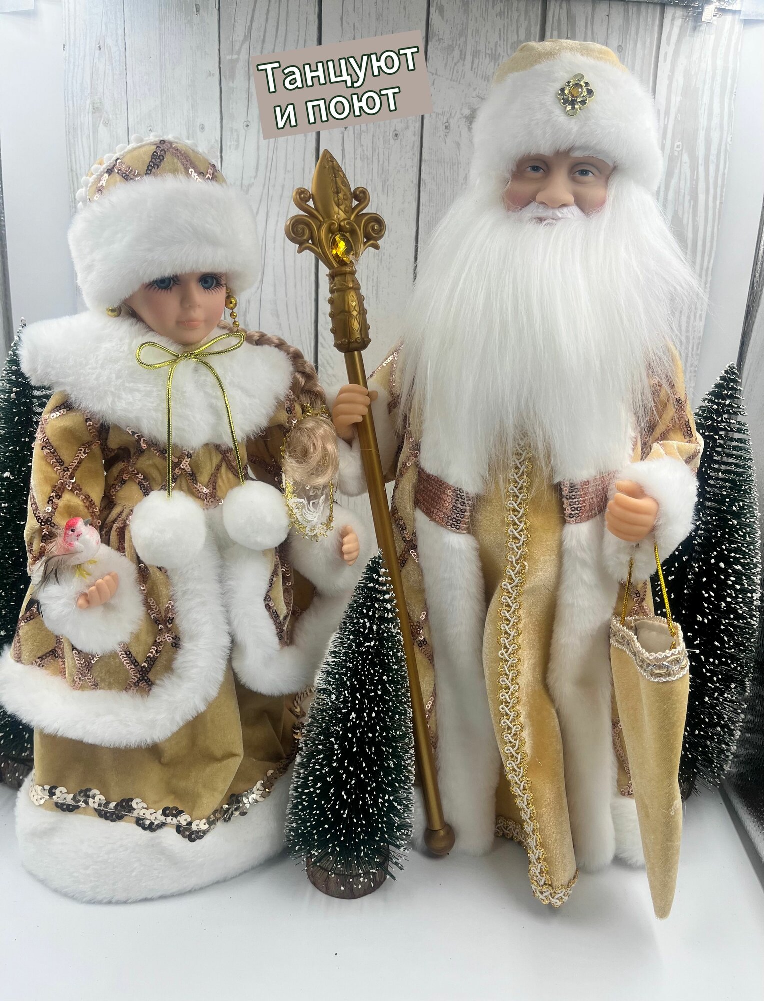 Купить Новогодние фигурки Деда Мороза 50см и Снегурочки 40см под елку, музыкальные с доставкой по всей России.