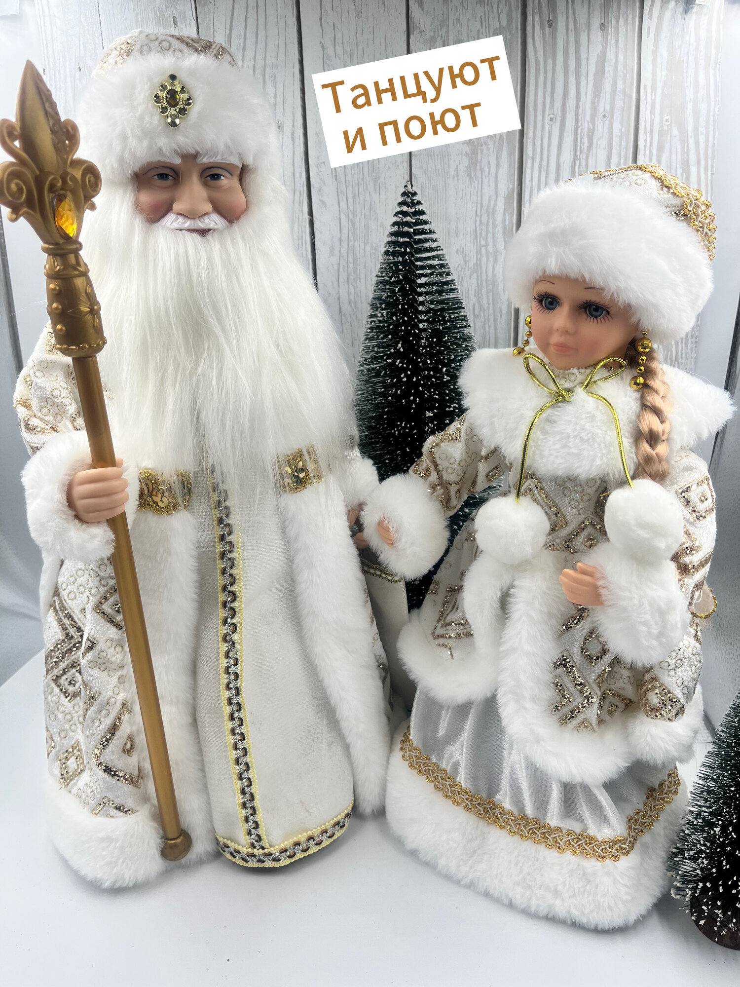 Купить Новогодние фигурки Деда Мороза 50см и Снегурочки 40см под елку, музыкальные с доставкой по всей России.