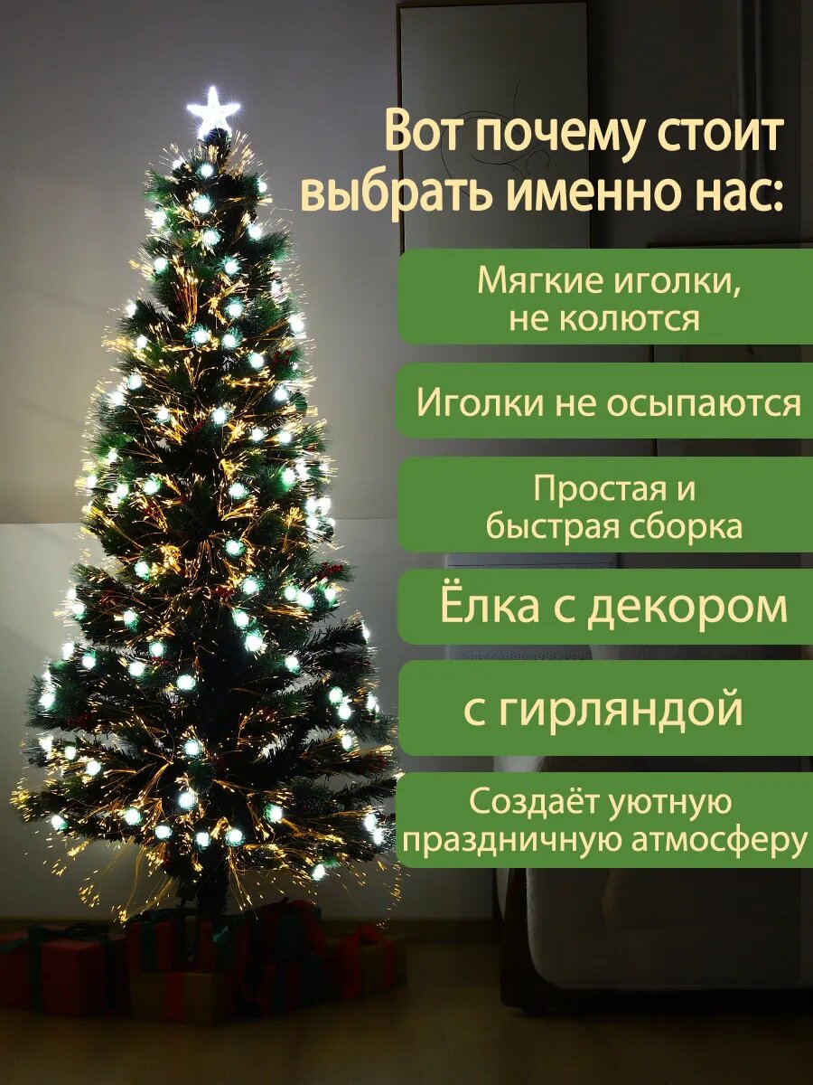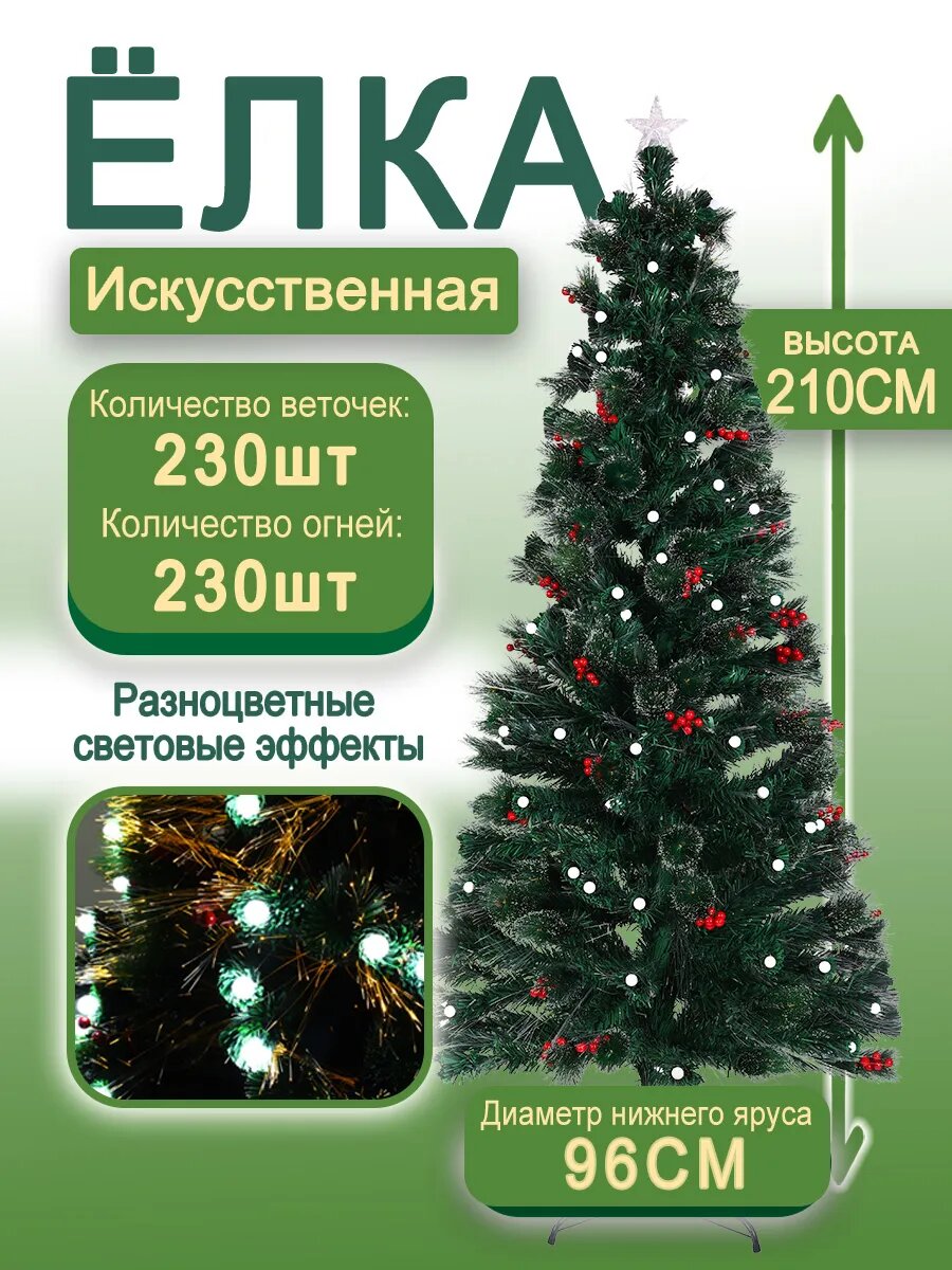 Новогодние искусственные ёлки 210 см ПВХ с подсветкой, зеленый сосновые иголки листья, оптоволокно, белый шарик: сравнение цен, характеристики, фото, актуальное наличие и цены.