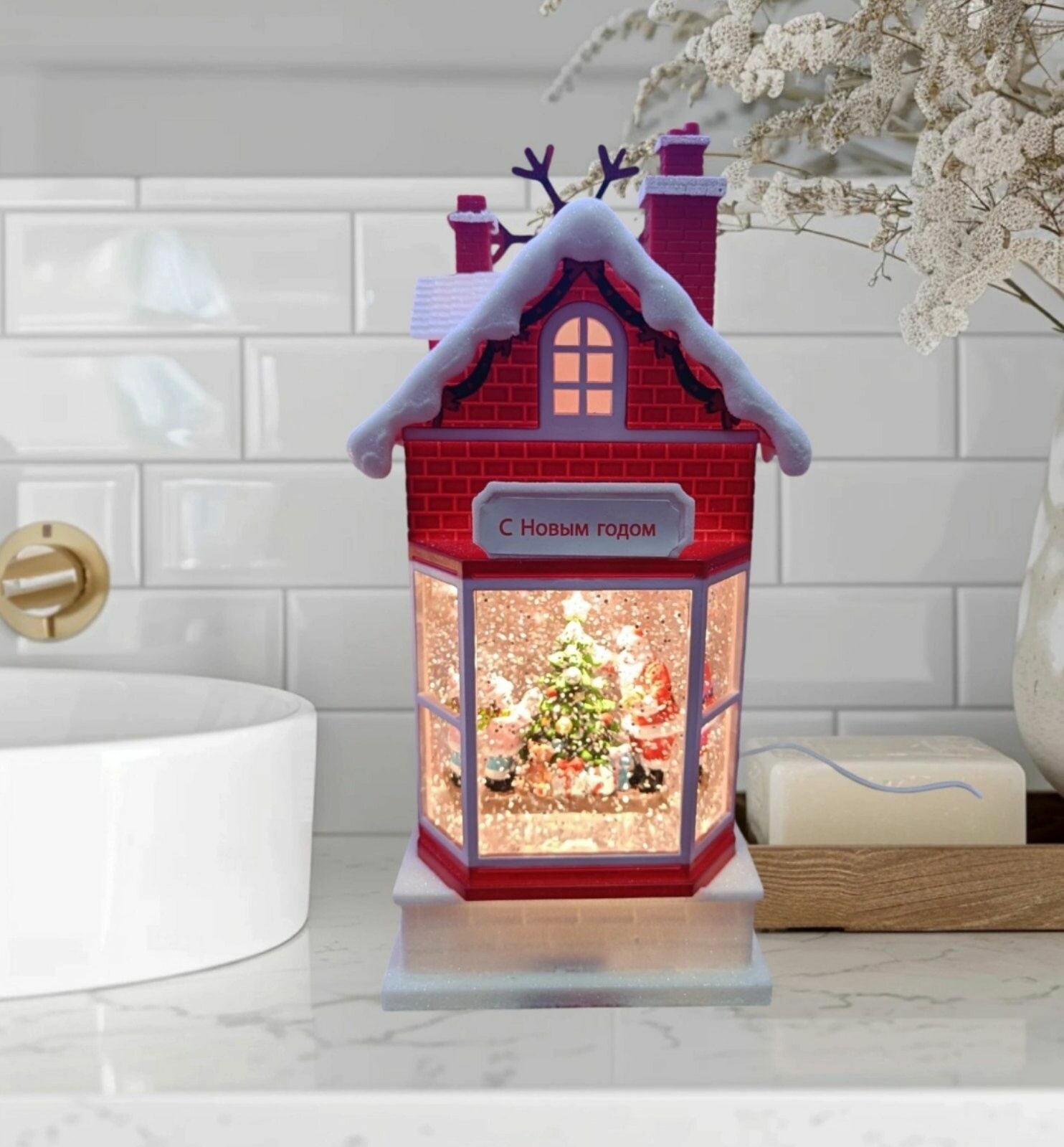 Новогодний фонарь «Домик с фигурками», музыкальный, с эффектом метели, 23 см: сравнение цен, характеристики, фото, актуальное наличие и цены.