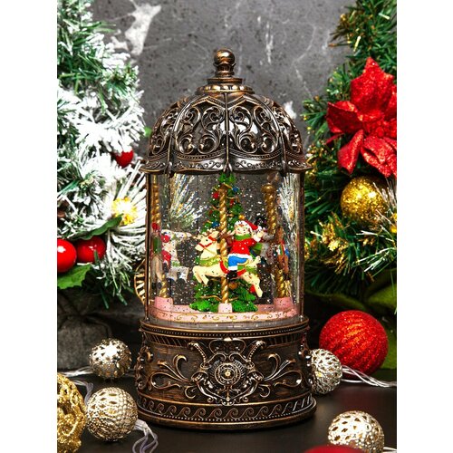 Купить Новогодний фонарь и светильник «Бронзовая карусель» с метелью и новогодней музыкой с доставкой по всей России.