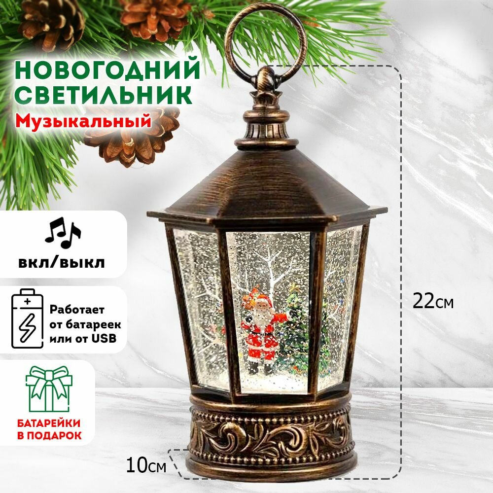 Новогодний фонарь светильник «Дед мороз с елкой» декоративный интерьерный музыкальный с эффектом снегопада и подсветкой: сравнение цен, характеристики, фото, актуальное наличие и цены.