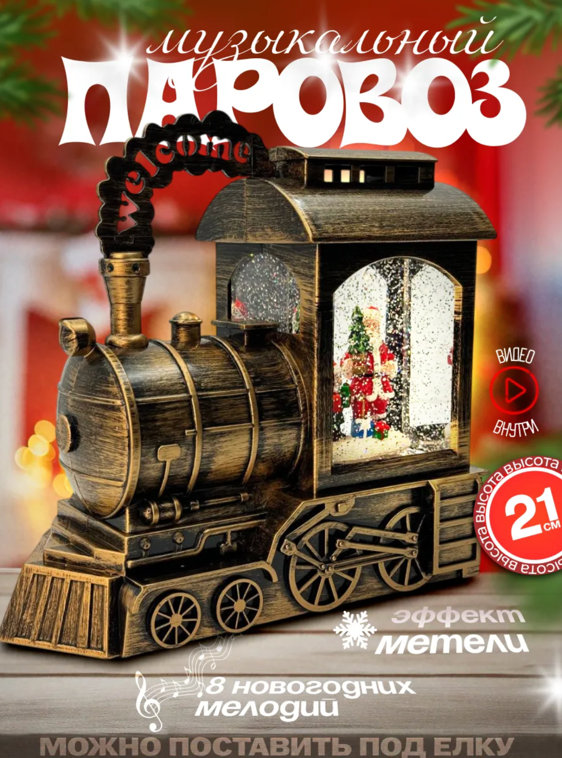 Новогодний фонарь-светильник Kosmo.store «Паровозик с Дедом Морозом», музыкальный, со снегом: сравнение цен, характеристики, фото, актуальное наличие и цены.