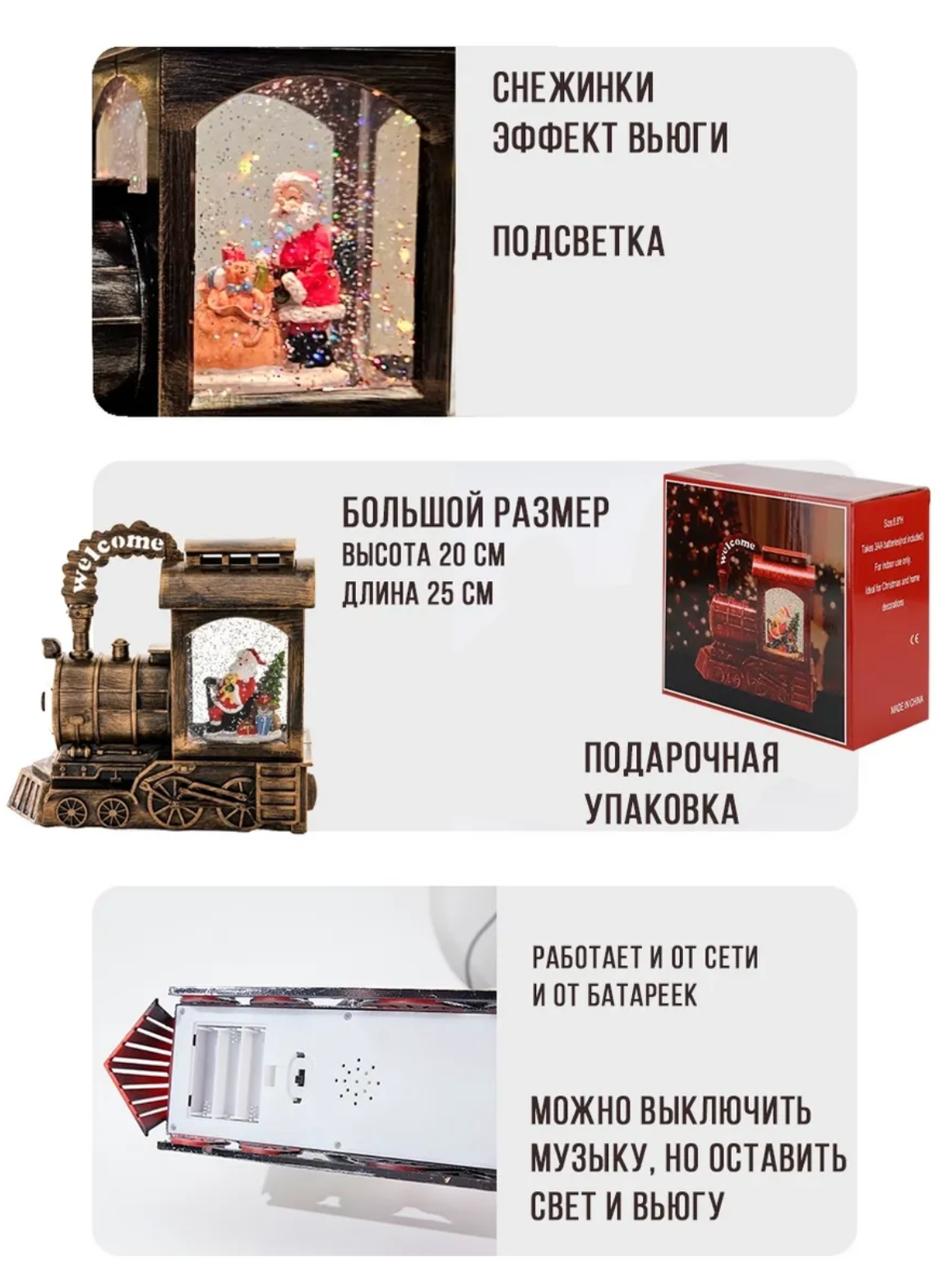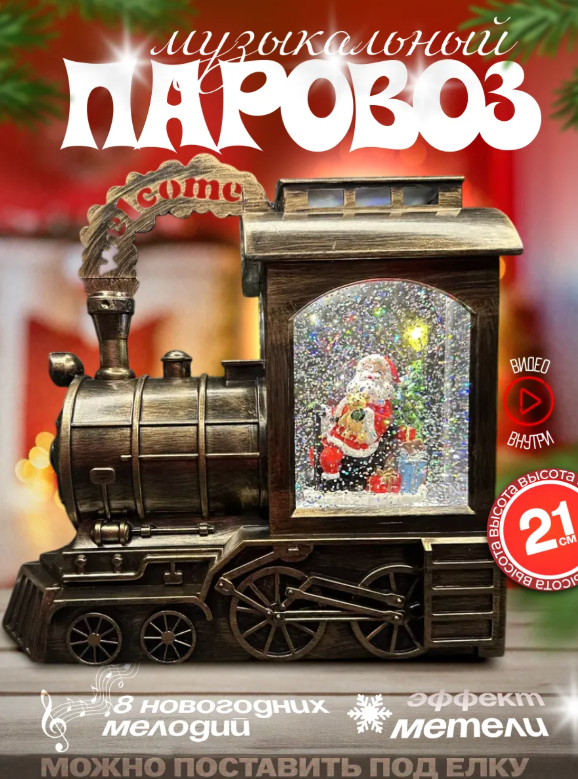 Новогодний фонарь-светильник Kosmo.store «Паровозик с Сантой», музыкальный, со снегом: сравнение цен, характеристики, фото, актуальное наличие и цены.