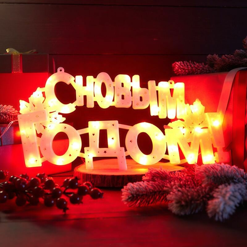 Купить Новогодний и Рождественский фонарик, украшение для дома, надпись светодиодная, композиция декора для комнаты и фотозоны, Новый год 2025 с доставкой по всей России.