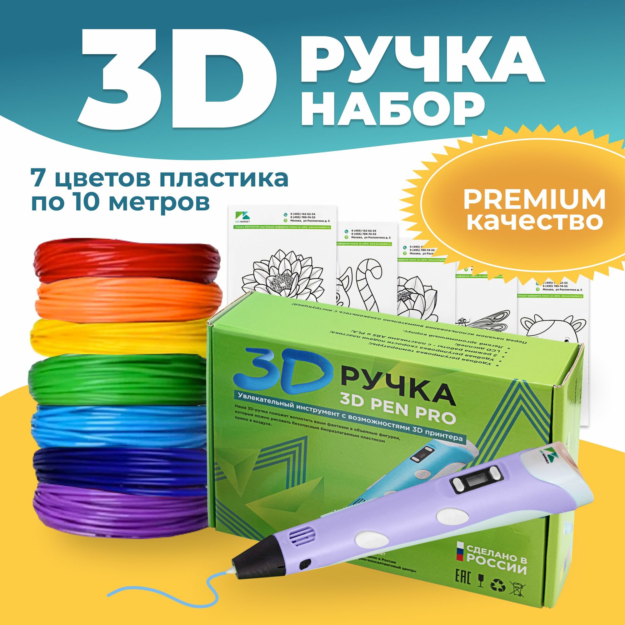 Купить Новогодний набор ребенку 3D ручка 3D Pen PRO 7 мотков пластика PLA 70 метров и трафареты для 3д рисования, фиолетовая с доставкой по всей России. Новогодний набор ребенку 3D ручка 3D Pen PRO 7 мотков пластика PLA 70 метров и трафареты для 3д рисования, фиолетовая: сравнение цен, характеристики, фото, актуальное наличие и цены.