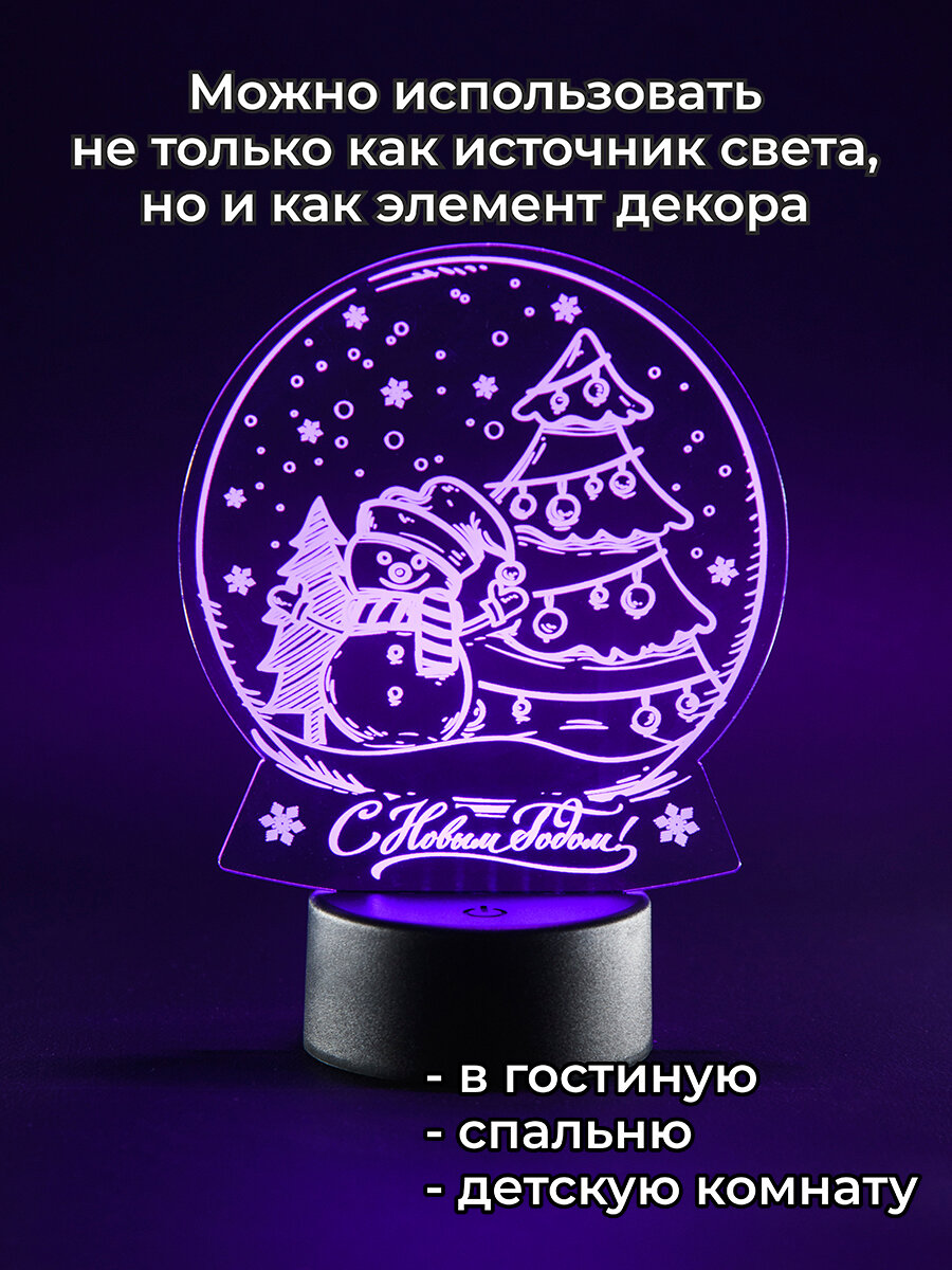 Стильный дизайн — 3D-светильник станет ярким акцентом в любом интерьере. Подходит для любой комнаты, спальни, рабочего стола или в качестве декоративного элемента в гостиной.