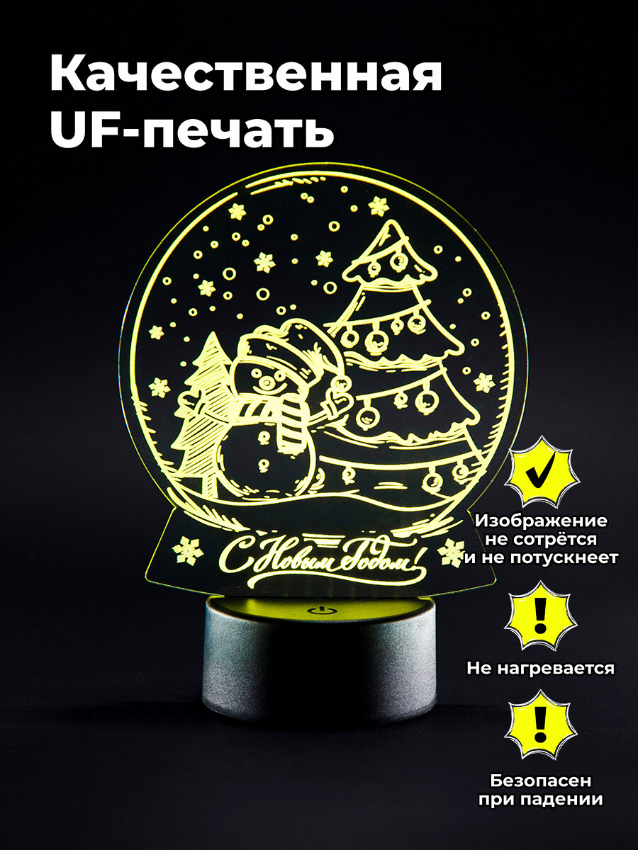 Безопасность и надёжность – акрил не бьётся, не нагревается, экологически безопасен. 3d светильник является энергосберегающим.