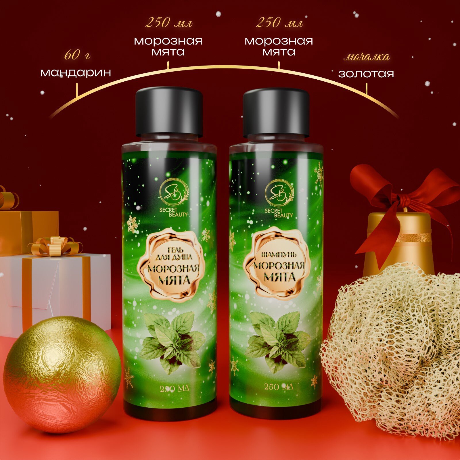 Новогодний подарочный набор косметики SB BEAUTY, шампунь, гель для душа, бомбочка, мочалка, с ароматом мяты и мандарина: сравнение цен, характеристики, фото, актуальное наличие и цены.