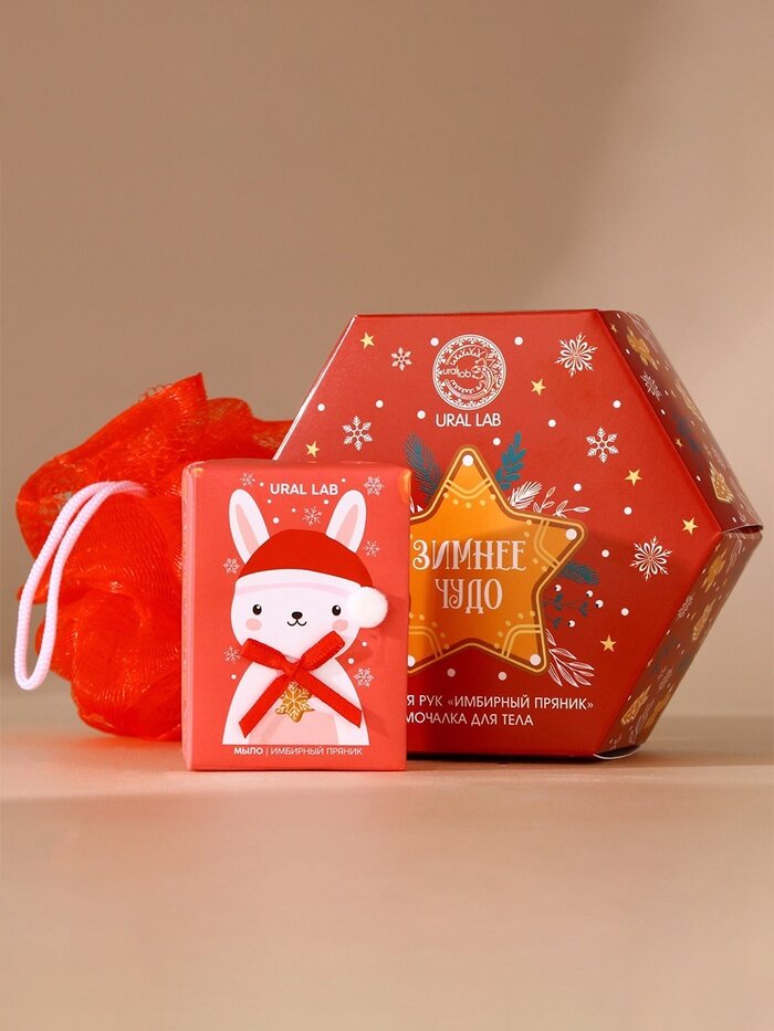 Новогодний подарочный набор косметики «Зимнее чудо»: мыло для рук кусковое 100 г и мочалка для тела, URAL LAB: сравнение цен, характеристики, фото, актуальное наличие и цены.