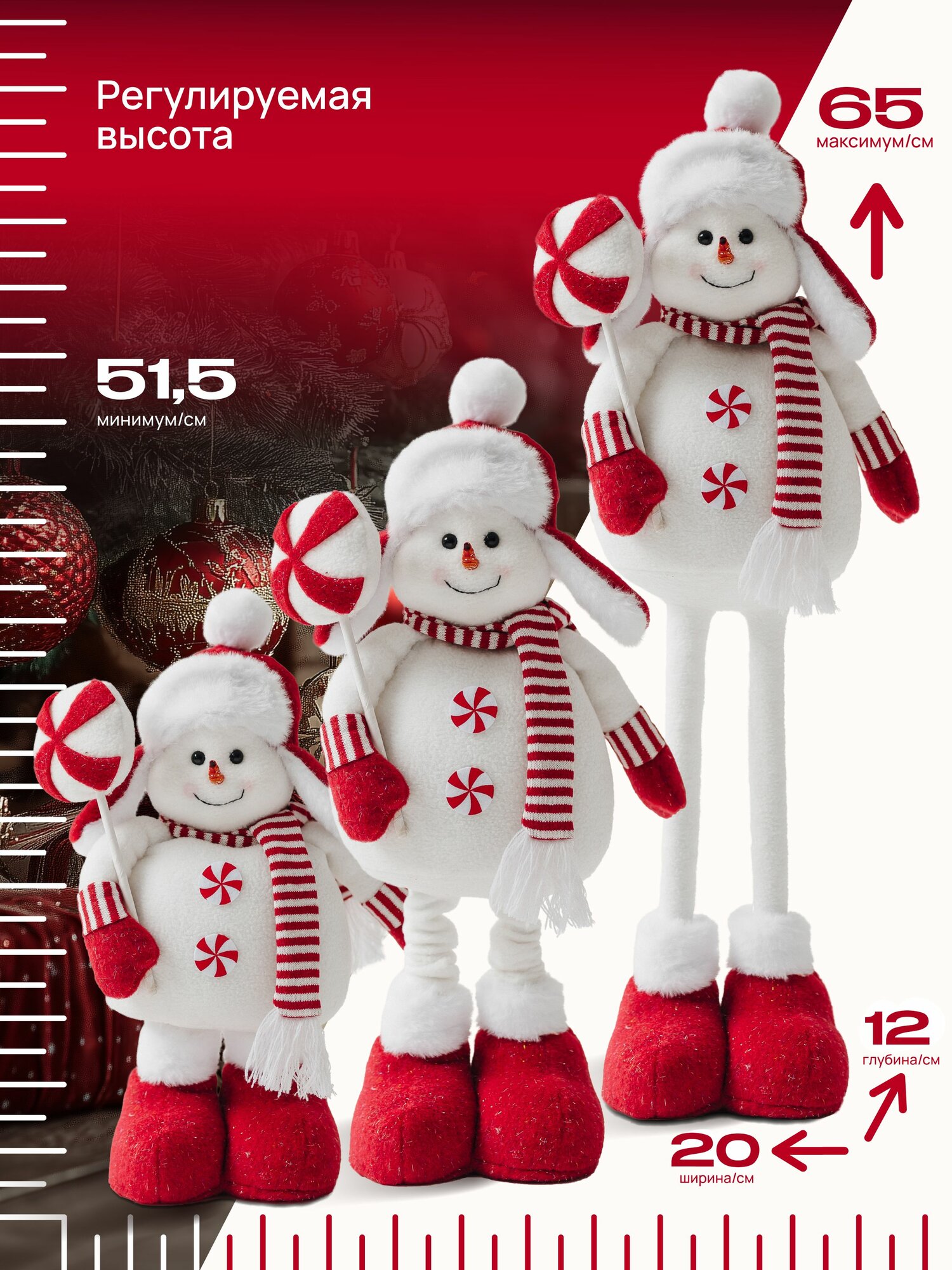 Новогодний снеговик телескопический, игрушка набивная под елку, фигурка на ножках, белый, высота 51,5-65 см, Ами мебель: сравнение цен, характеристики, фото, актуальное наличие и цены.