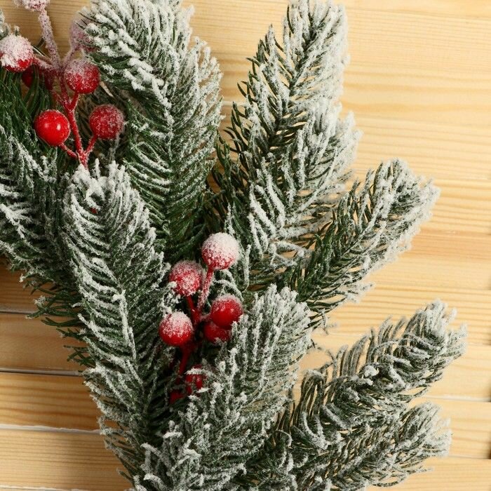Новогодний венок «Уютная сказка» 33 см, зелёный заснеженный уличный венок с ягодами, рождественское декоративное украшение с белым напылением на дверь для дома