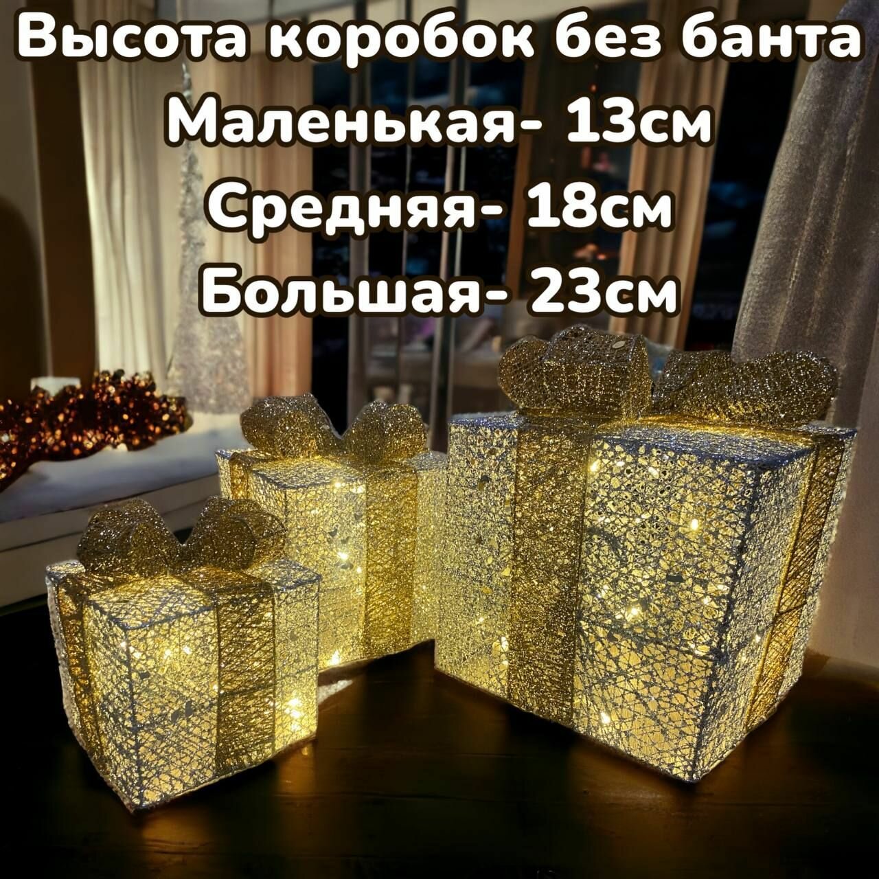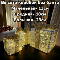 Купить Новогодняя декорация подарочные коробки с подсветкой 25*25/20*20*/15*15 см 3 шт. с доставкой по всей России. Новогодняя декорация подарочные коробки с подсветкой 25*25/20*20*/15*15 см 3 шт.: сравнение цен, характеристики, фото, актуальное наличие и цены.