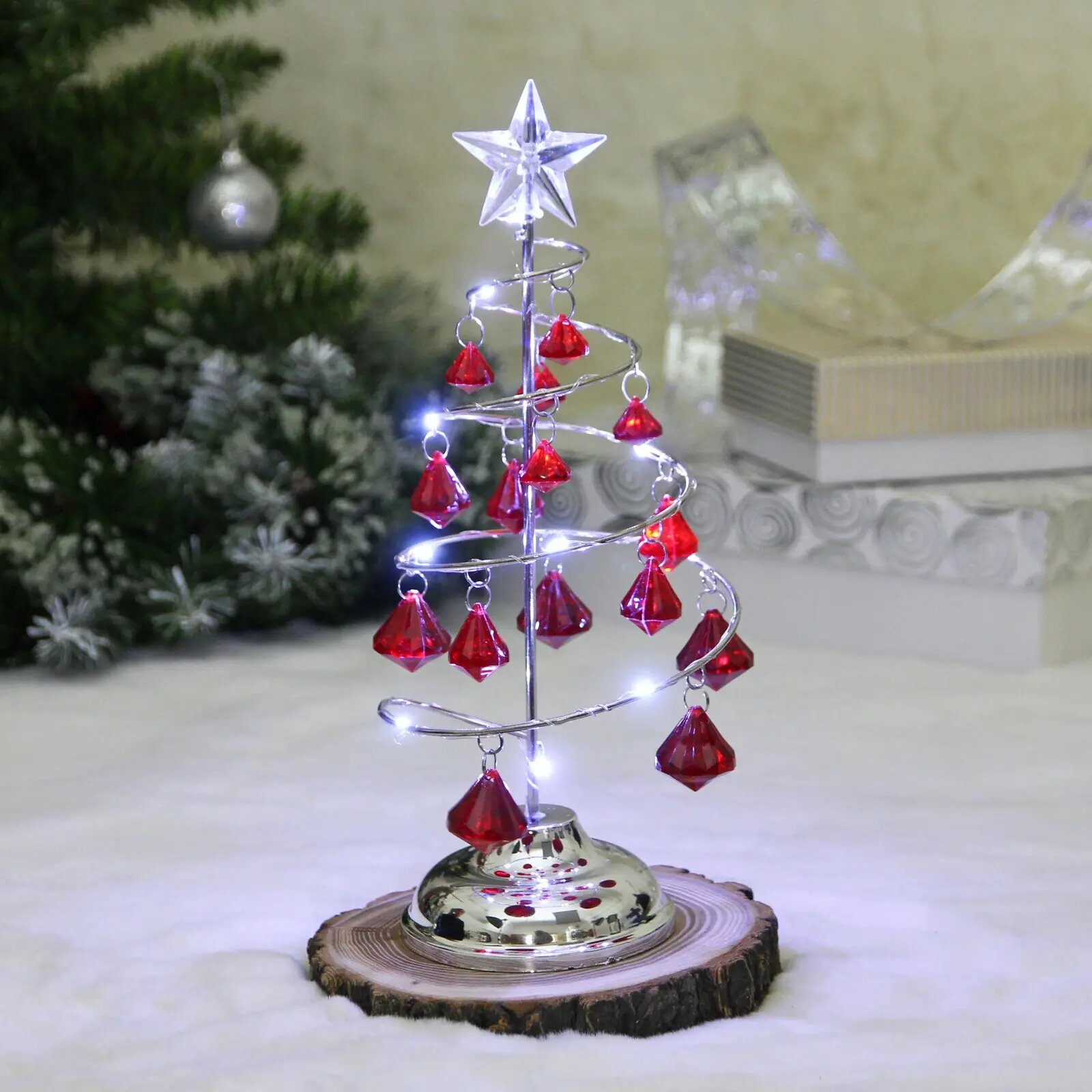 Купить Новогодняя елка «Елочка Хрустальная» с LED-подсветкой, 26 см, серебряное основание, красные акценты с доставкой по всей России.
