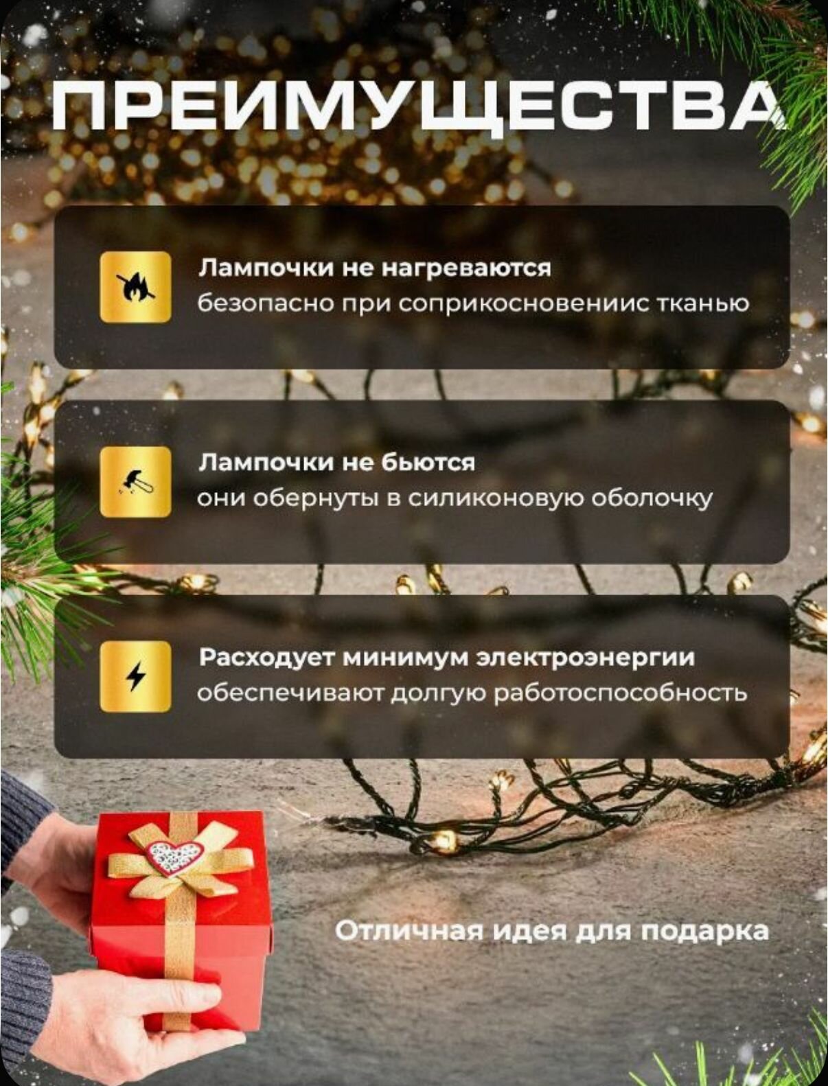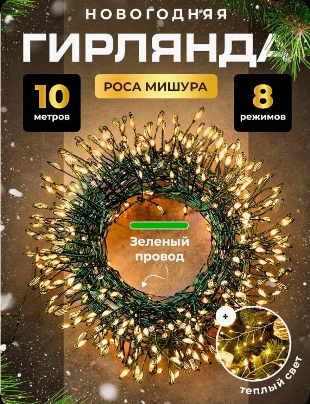 Купить Новогодняя гирлянда роса-мишура 10 метров / 400 светодиодов, 8 режимов / Теплый белый свет с доставкой по всей России. Новогодняя гирлянда роса-мишура 10 метров / 400 светодиодов, 8 режимов / Теплый белый свет: сравнение цен, характеристики, фото, актуальное наличие и цены.