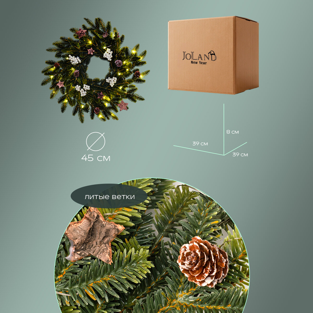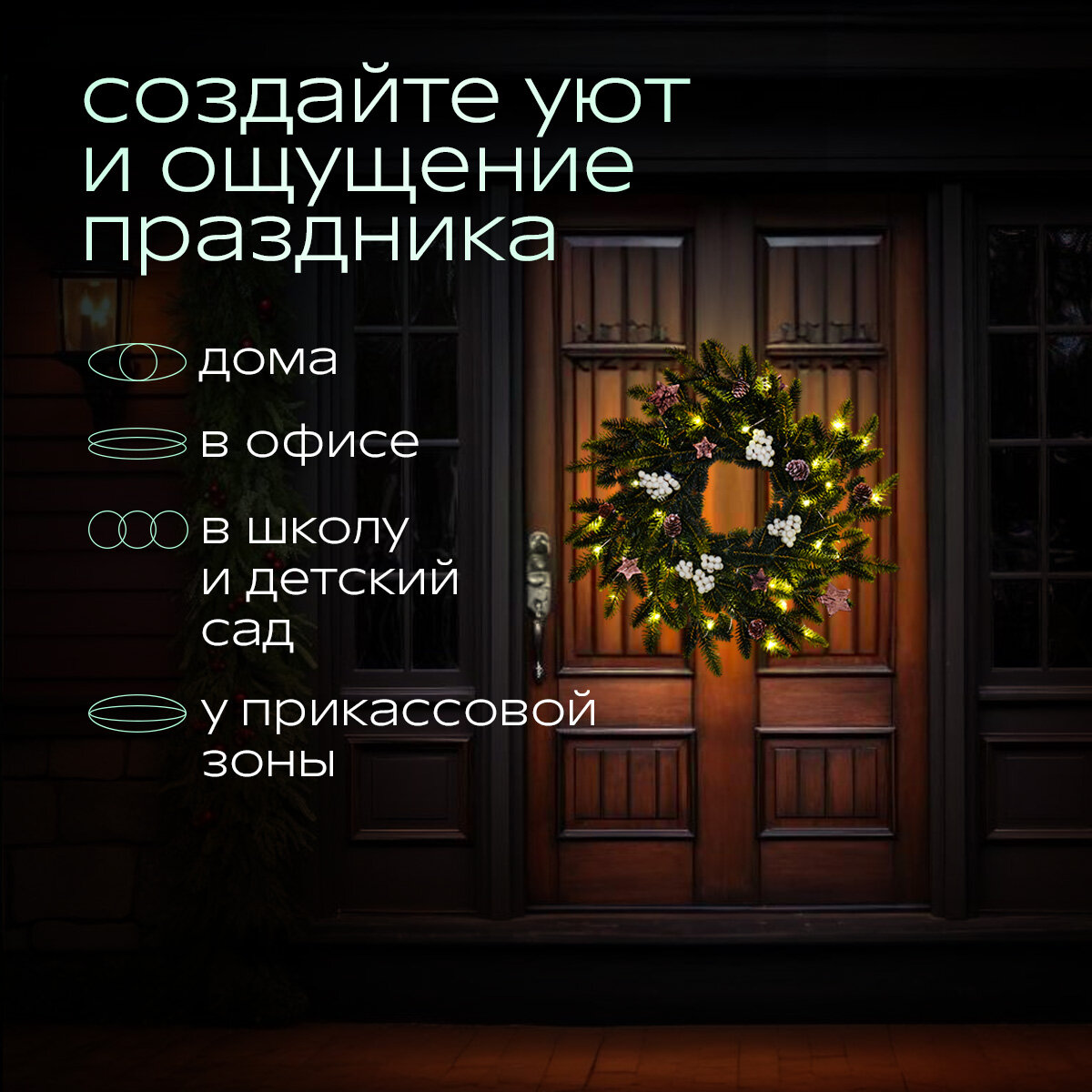 Новогодняя гирлянда от бренда JoLand создаст атмосферу праздника в вашем доме. Это украшение прекрасно подходит для любого интерьера и поможет выразить дух зимнего торжества. Гирлянда на батарейках позволяет разместить её где угодно, будь то комната или вход. На двери новогодний венок будет радовать вас и ваших гостей уютными вечерними огоньками, создавая тепло и комфорт. Представьте, как приятно любоваться этой красотой за чашкой горячего напитка в тёплой семейной обстановке. За счёт работы от аккумуляторов она не требует постоянного подключения к электросети, что делает её использование ещё более удобным и безопасным. Эта модель прочна и долговечна, что делает ее не только прекрасным украшением на Новый год, но и выгодным приобретением для многих сезонов вперед. Гирлянда идеально подходит как подарок близким или друзьям. Доставьте радость детям и взрослым, заходите к нам в профиль, и вы найдете много вариантов и идей для декора вашего дома.