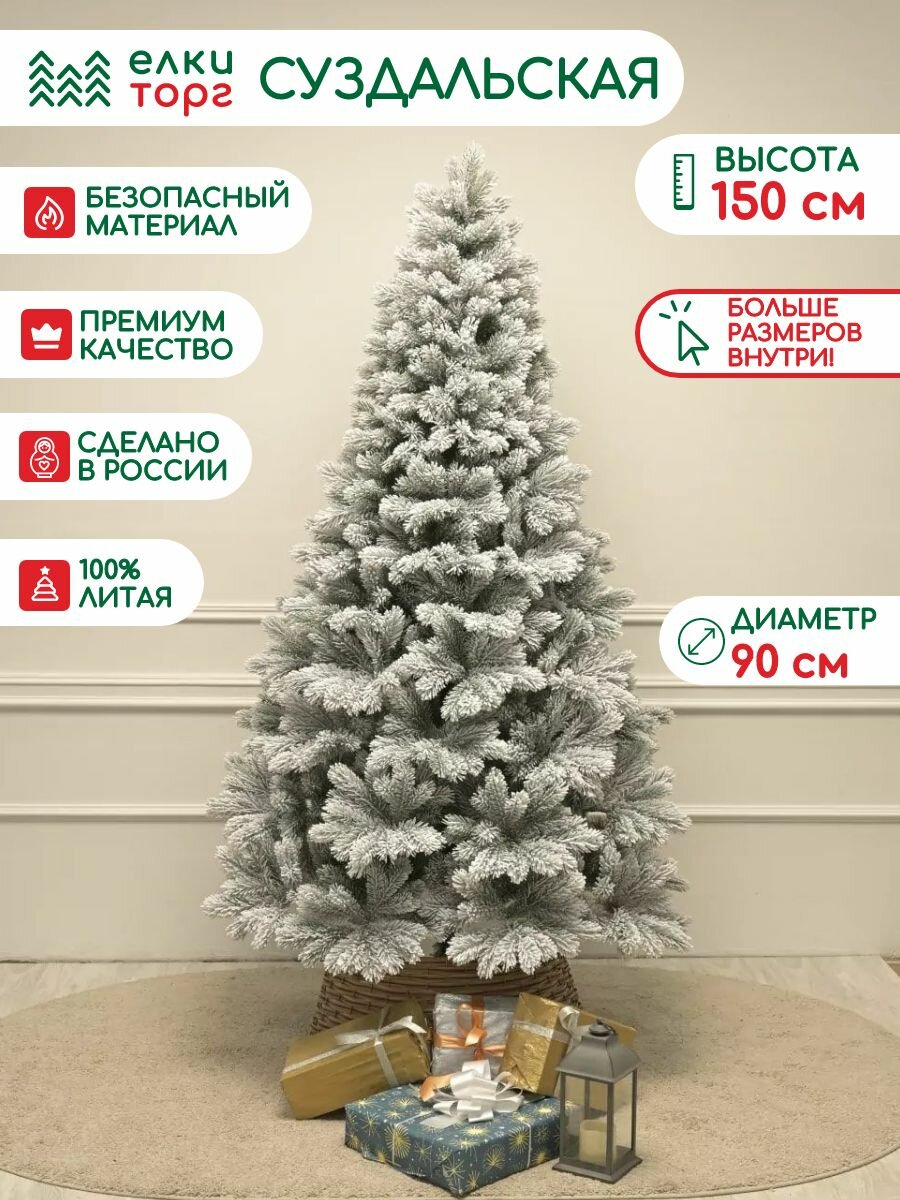 Купить Новогодняя искусственная елка Суздальская заснеженная 150 см, 100% Литая хвоя, ЕлкиТорг (273150) с доставкой по всей России.