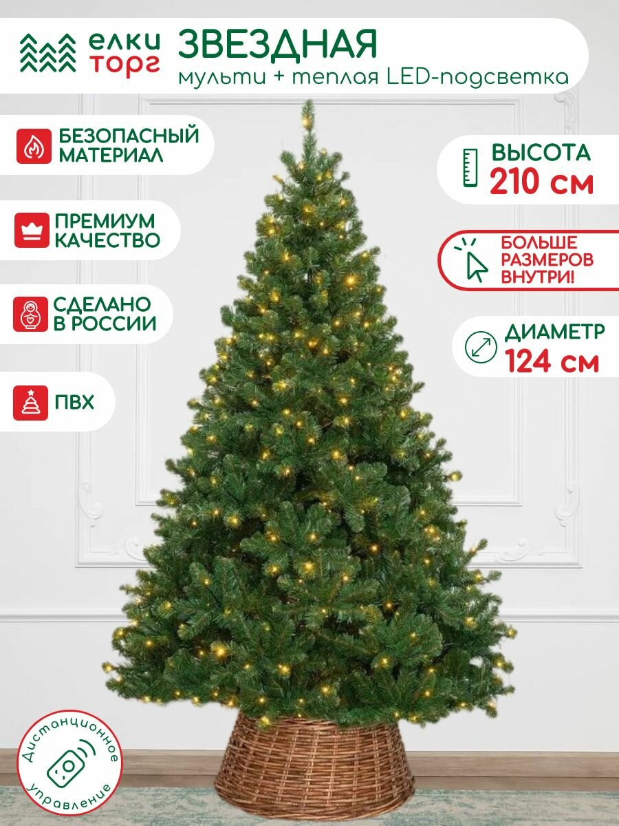 Купить Новогодняя искусственная елка Звездная 210 см, 504 мульти+теплых белых LED ламп, мягкая хвоя, (189210) с доставкой по всей России. Новогодняя искусственная елка Звездная 210 см, 504 мульти+теплых белых LED ламп, мягкая хвоя, (189210): сравнение цен, характеристики, фото, актуальное наличие и цены.