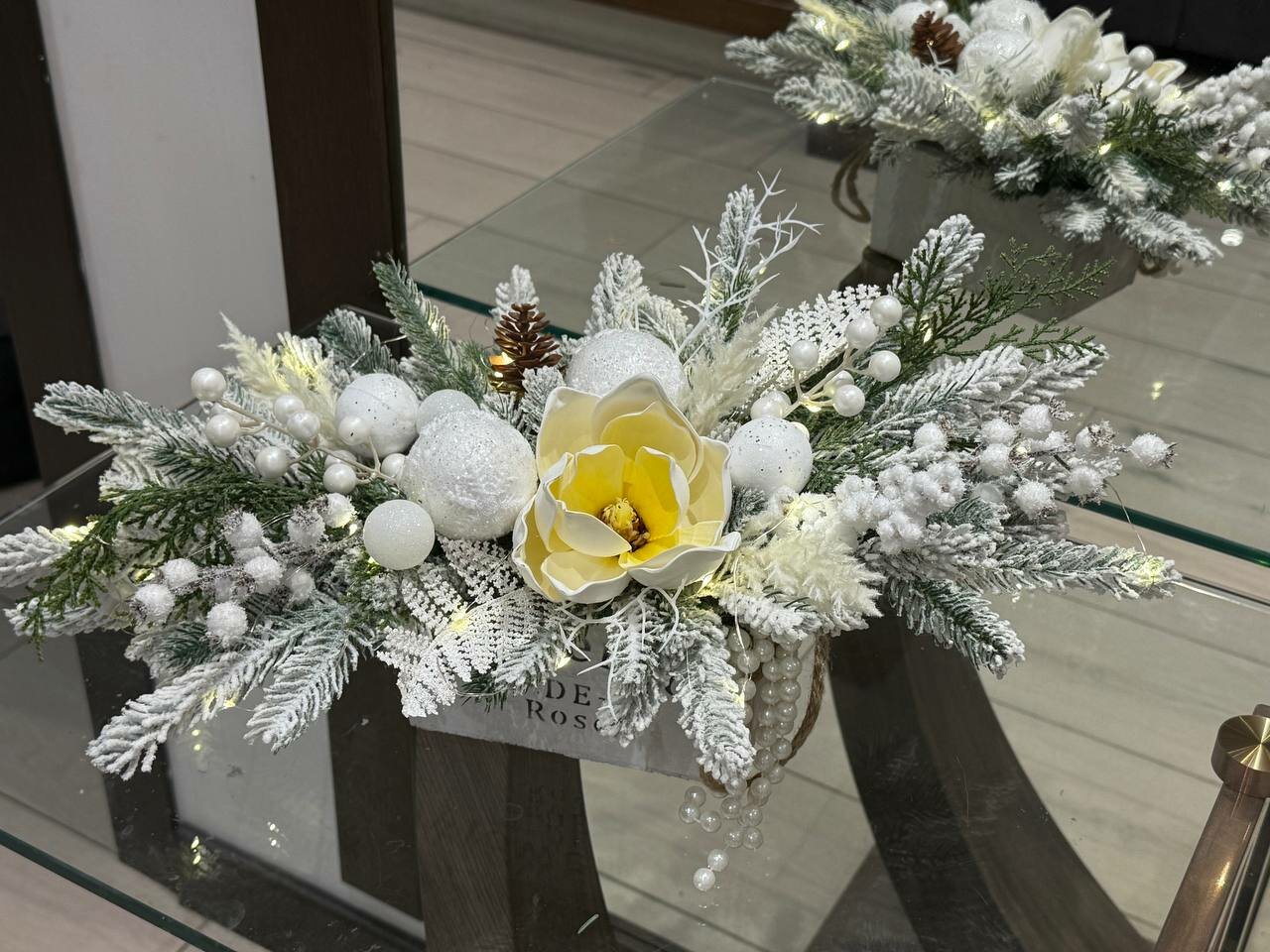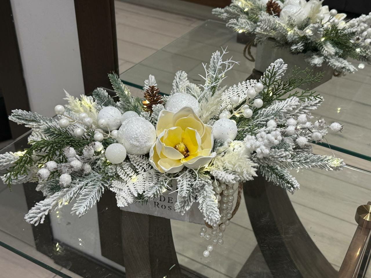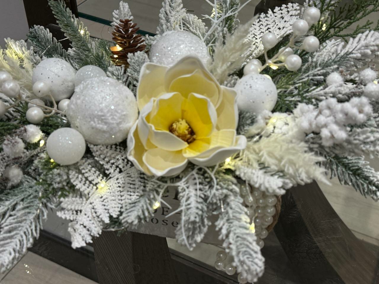 Купить Новогодняя композиция на стол в кашпо , Магнолия с подсветкой роса декор для новогоднего интерьера 35см с доставкой по всей России. Новогодняя композиция на стол в кашпо , Магнолия с подсветкой роса декор для новогоднего интерьера 35см: сравнение цен, характеристики, фото, актуальное наличие и цены.