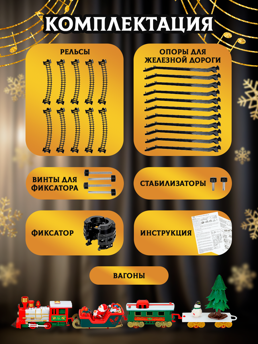 Купить Новогодняя музыкальная железная дорога «Чудеса» поезд на елку, елочное украшение. На батарейках. Артикул НУ-8020 с доставкой по всей России.