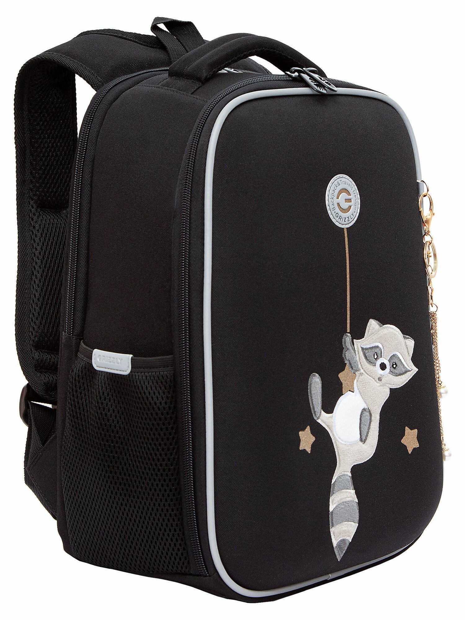 Купить Ранец школьный для девочек GRIZZLY RAw-594-12, черный, 26х37х16 с доставкой по всей России.