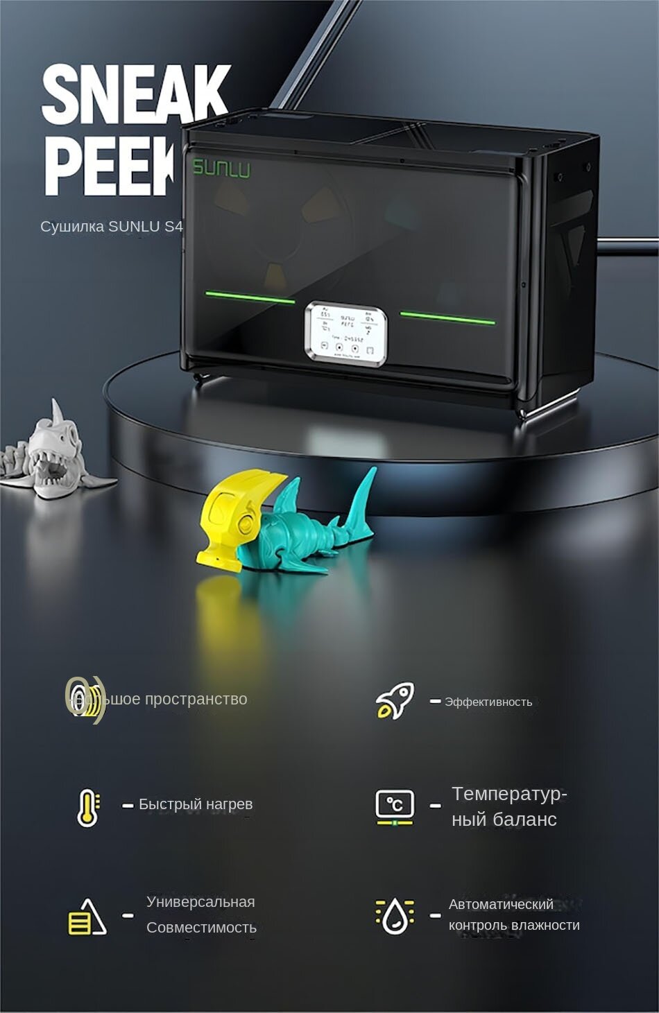 Новый сушильный аппарат для расходных материалов 3D-принтера SUNLU S4. Емкость катушек — 4 штуки.: сравнение цен, характеристики, фото, актуальное наличие и цены.