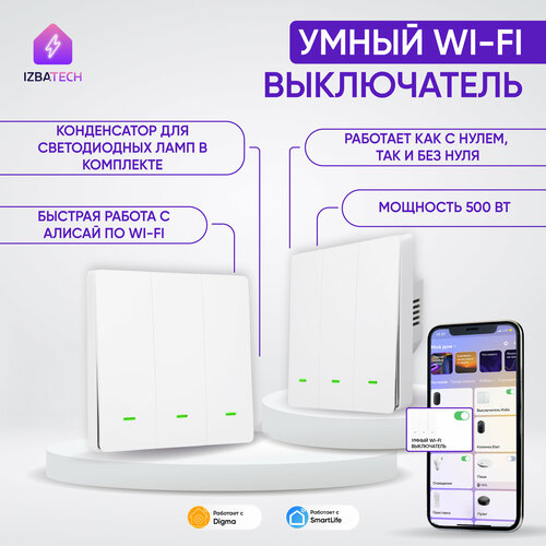 Умный выключатель с WIFI, работает С нулем и без нуля, умный дом, импульсный трехклавишный, белый: сравнение цен, характеристики, фото, актуальное наличие и цены.