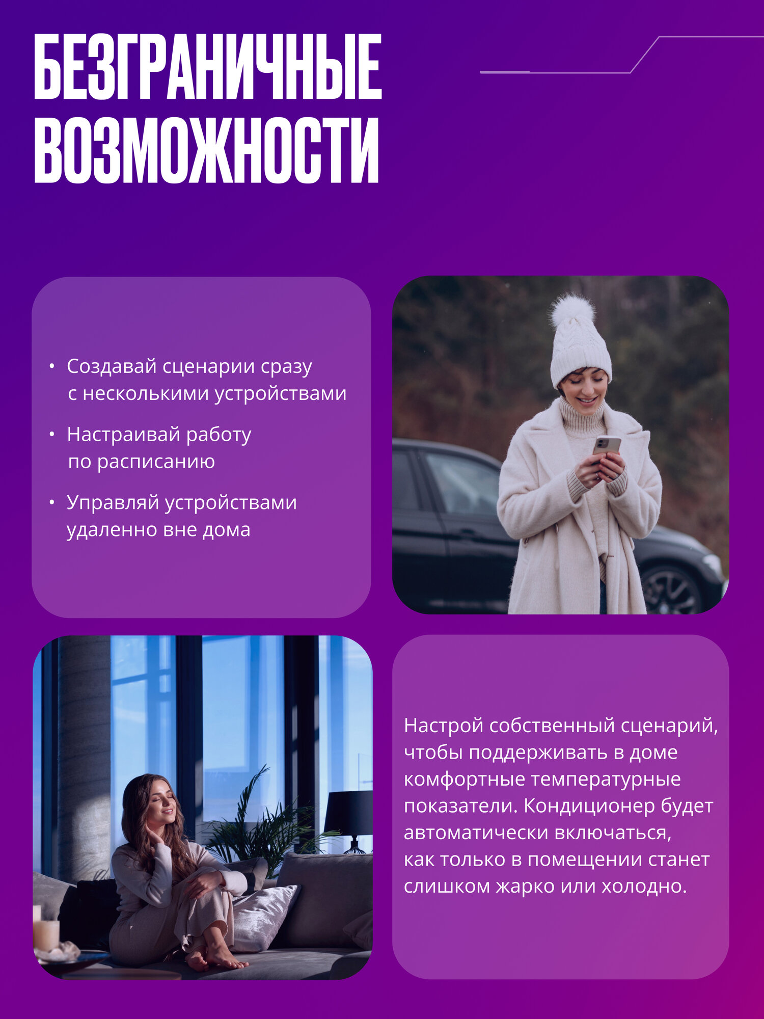 | Экосистема Умного дома | Amazon Alexa, DIGMA SmartLife, Google Home, Samsung SmartThings, Tuya Smart, Умный дом Яндекса |