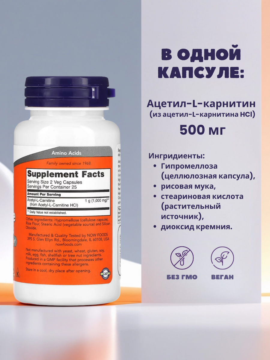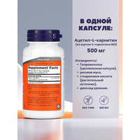 Купить NOW Ацетил L-Карнитин, без глютена, нейтральный вкус, 50 капсул с доставкой по всей России.