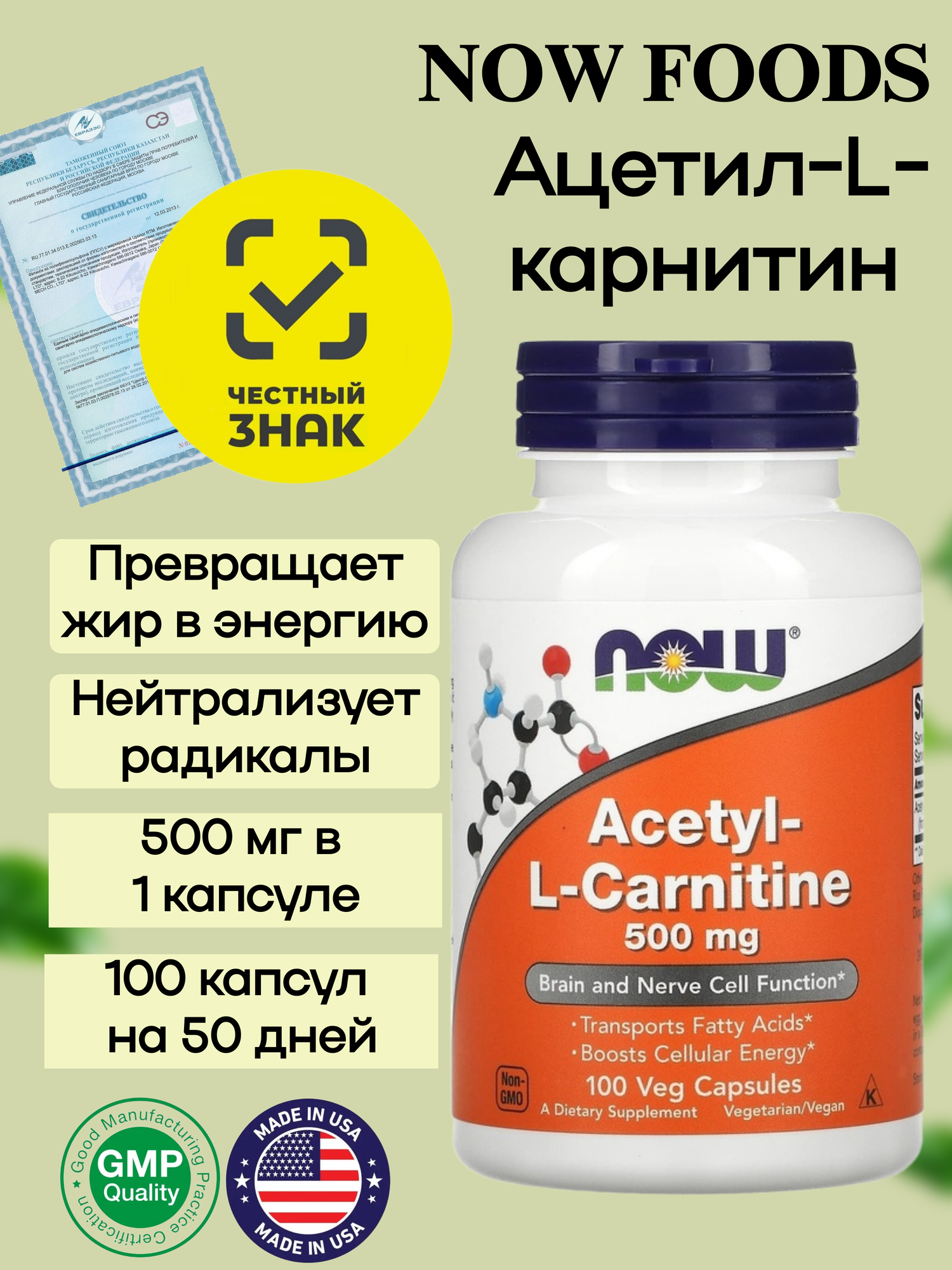 Ацетил-L-карнитин (из ацетил-L-карнитина гидрохлорида) - 500 мг. Ингредиенты: Гипромеллоза (целлюлозная капсула