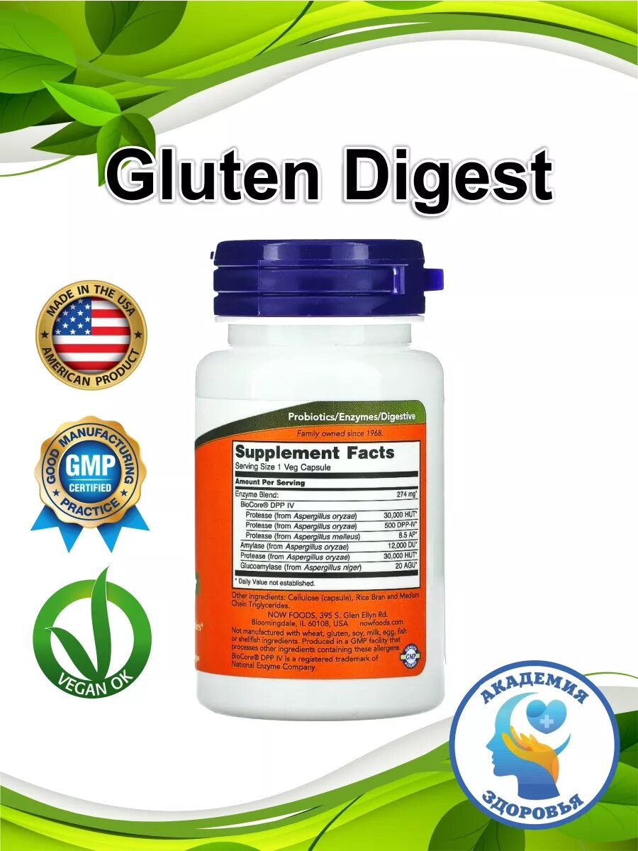 NOW Foods Gluten Digest Глютен Дайджест Энзимы — 60 капсул для переваривания пищи: сравнение цен, характеристики, фото, актуальное наличие и цены.