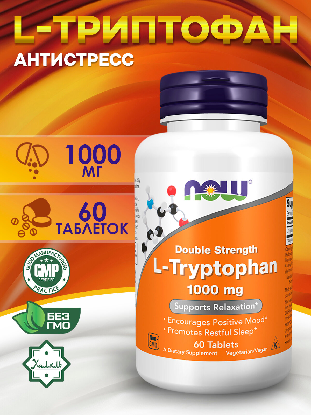 L-триптофан NOW® Double Strength содержит в два раза больше L-триптофана (1000 мг на таблетку), чем в нашем обычном продукте strength (500 мг на капсулу).