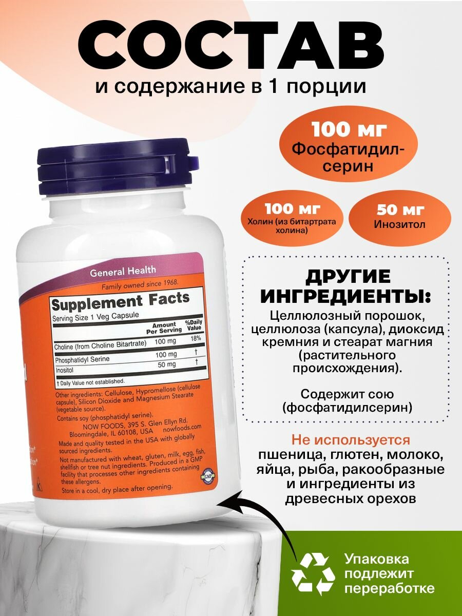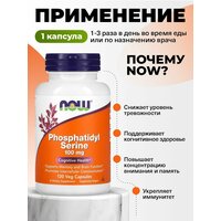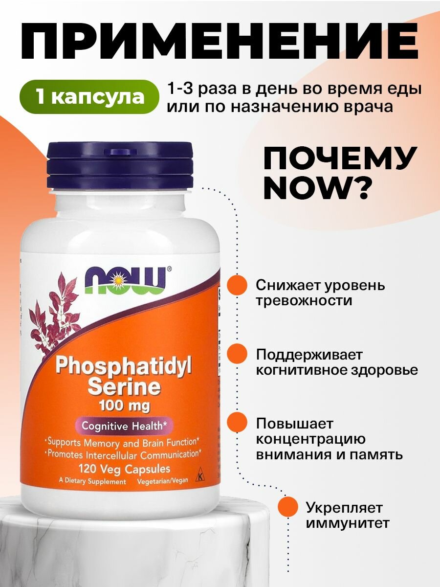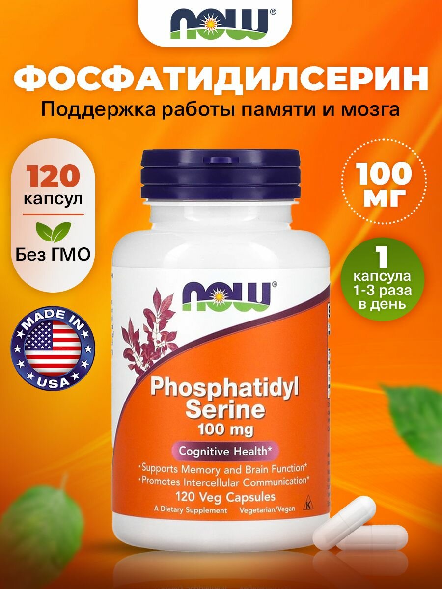 NOW Phosphatidyl Serine, Фосфолипид (фосфатидилсерин), 100мг 120 капсул, Антиоксидант для мозга, памяти