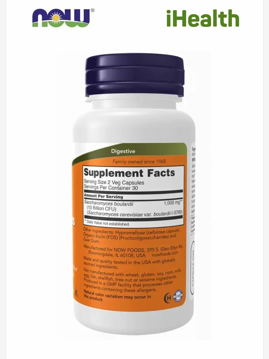 NOW Saccharomyces Boulardii 60 капсул Нау Фудс сахаромицеты буларди сахаромицеты: сравнение цен, характеристики, фото, актуальное наличие и цены.