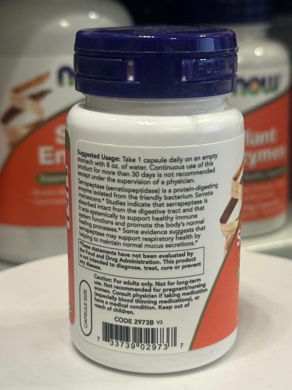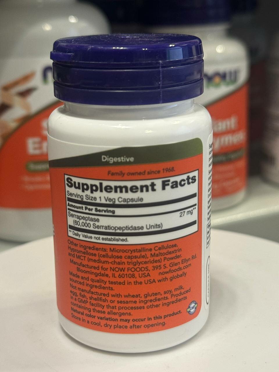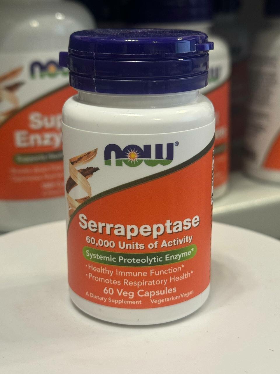 NOW Serrapeptase 60.000, Серрапептаза, Мощный противовоспалительный фермент для здоровья сосудов и суставов, 60 капсул: сравнение цен, характеристики, фото, актуальное наличие и цены.