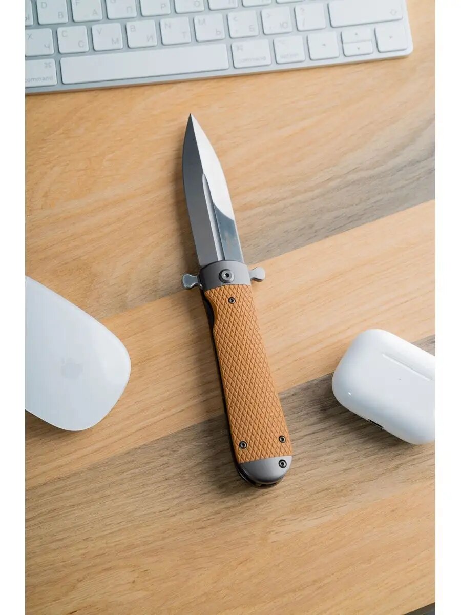 автоматический выброс клинка, блокировка лезвия, возможность использования одной рукой, клипса для кармана