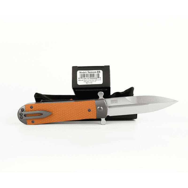 Нож Adimanti Samson имеет визуальное сходство с копьем благодаря симметричному клинку. Изделие рассчитано на использование как в городских, так и полевых условиях, поскольку оно имеет компактные габариты для комфортного ношения в кармане и обладает высокой стойкостью к воздействию агрессивных сред, в особенности ряда кислот и обычной влаги.