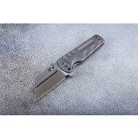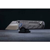 Нож открывается за плавник, симметричные шпеньки, зацепом за широкий дол и даже просто инерционно. Осевой узел выполнен на подшипниках с керамическими шариками, механика прекрасная, клин просто «летает». А если в разложенном виде ввинтить пин в специальное отверстие, нож станет фикседом. Рукоять модели 1820G-GYS формируется проставкой-бэкспейсером и титановыми плашками, что позволило реализовать замок Frame Lock, являющийся, по сути, более надёжной модификацией обычного линейного замка за счёт увеличенного пятна контакта с пятой клинка. Для повышения износостойкости замок снабжён стальным «сухарём». Клипса двухпозиционная, переставляемая под правую/левую руку.