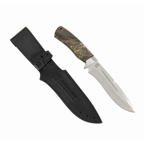Рукоять ножа изготовлена из стабилизированного кап клена, который обладает высокой прочностью и устойчивостью к влаге и перепадам температур. Это делает нож надежным и удобным в использовании в любых условиях.