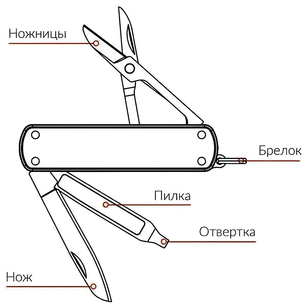количество инструментов (функций): 18; материал инструмента: нержавеющая сталь; количество бит: 18 шт.; инструменты (функции) подробно: Нож/Канатный нож/Пила по дереву/Напильник по металлу/Напильник по дереву/Узкогубцы/Стандартные плоскогубцы/Кусачки для тонкой проволоки/Кусачки для жесткой проволоки/Отвертка Philips/Отвертка шлицевая/Hожницы/Отвертка для очков/Открывашка для бутылок/Отвертка шлицевая большая/Консервный нож/Нож для зачистки проводов/Линейка; наконечники отвёрток / ключей: плоский (SL), крестовой (PH); для тайтла наборов: комплект швейцарских карт; ширина: 40 мм