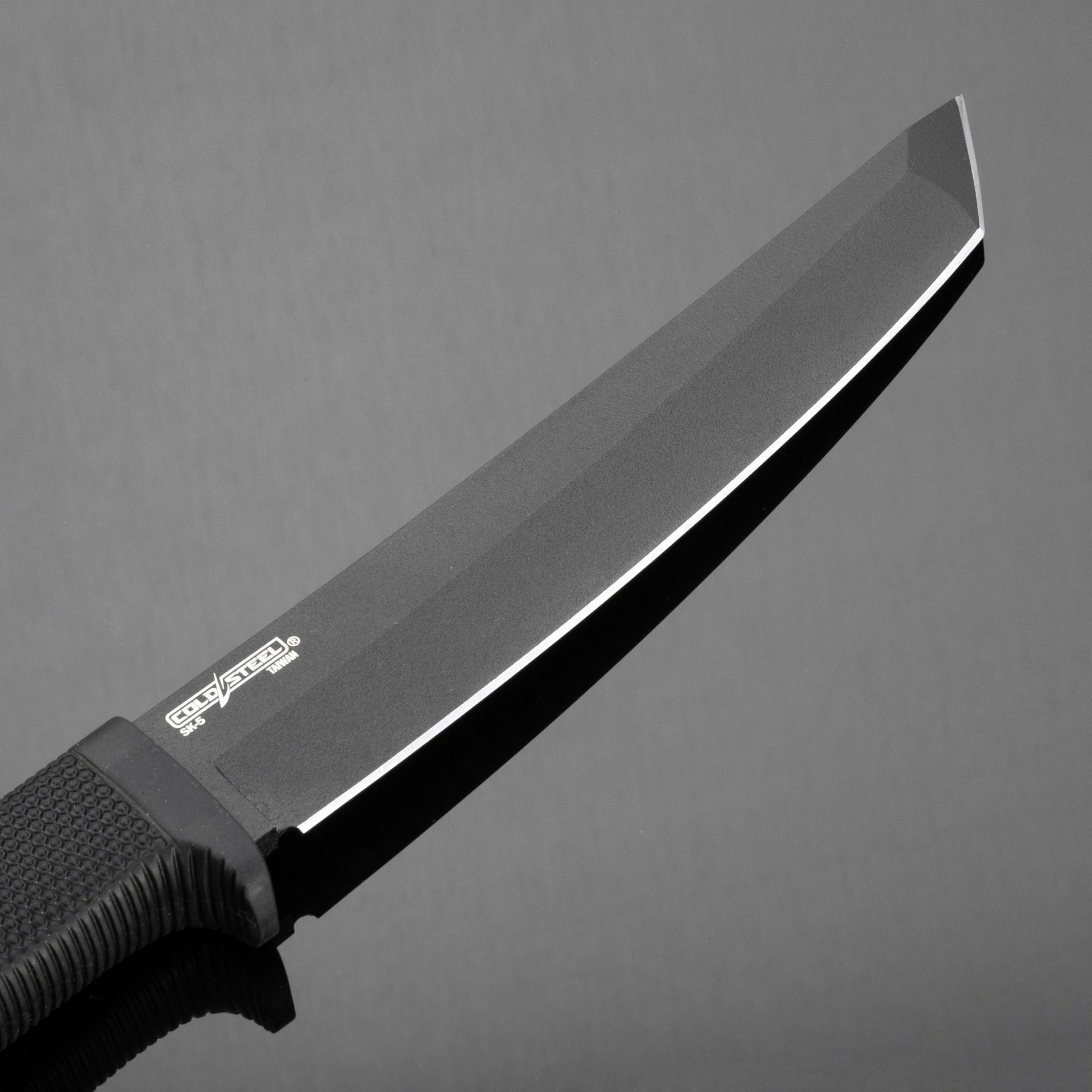 «Оптимизированную» версию из SK-5 делают на Тайване, куда пришлось перенести производство ради удешевления. Эта японская инструментальная сталь при хорошей термообработке показывает удивительное сочетание твёрдости и прочности, отлично выдерживая ударные нагрузки. Отличием Recon Tanto из стали SK-5 от прошлых версий стало сокращение рикассо (незаточенное пространство у основания клинка). Если раньше оно