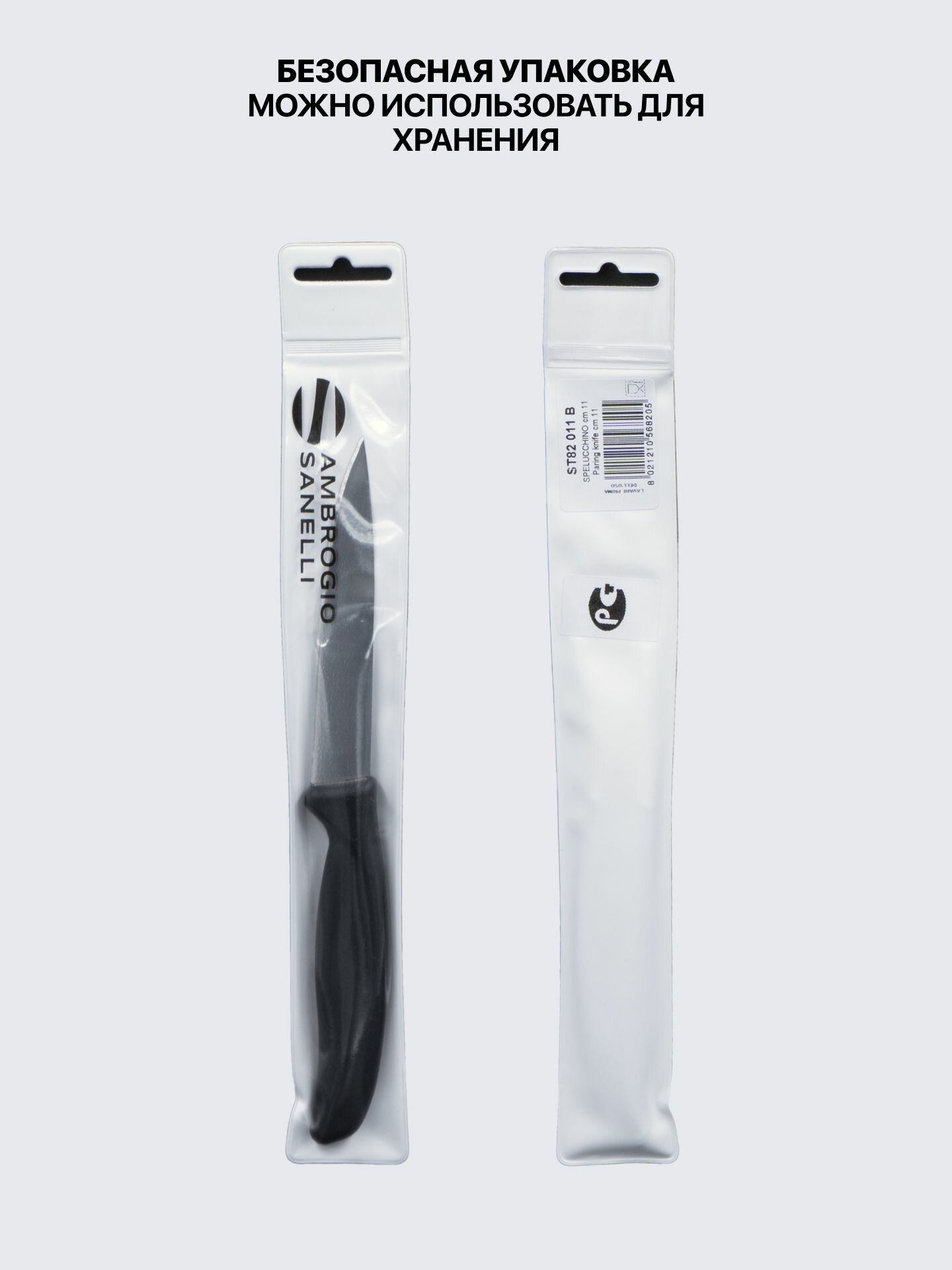 Купить Нож для чистки овощей и фруктов 11 см профессиональный Sanelli Ambrogio ST82011B / черная ручка с доставкой по всей России.