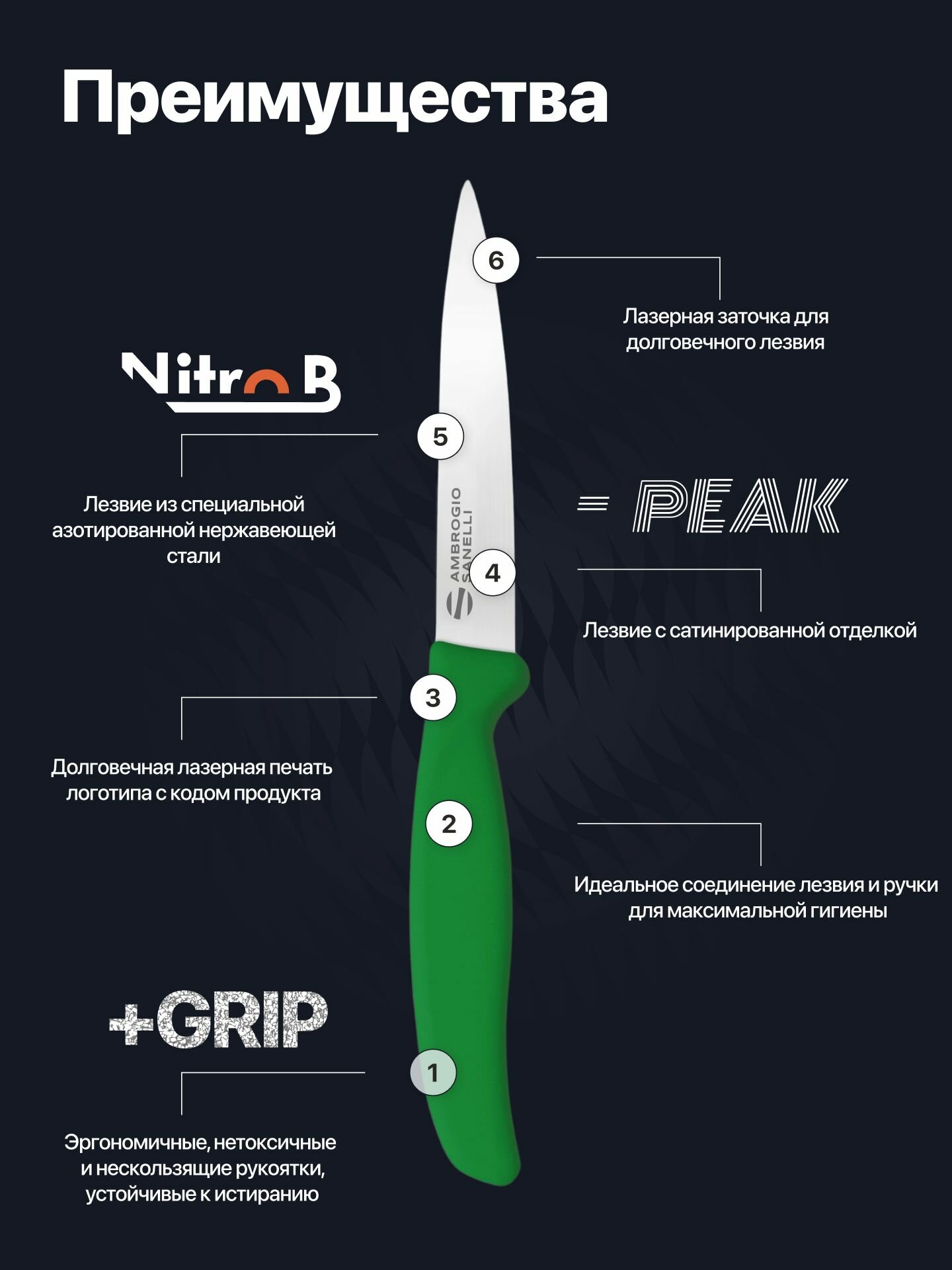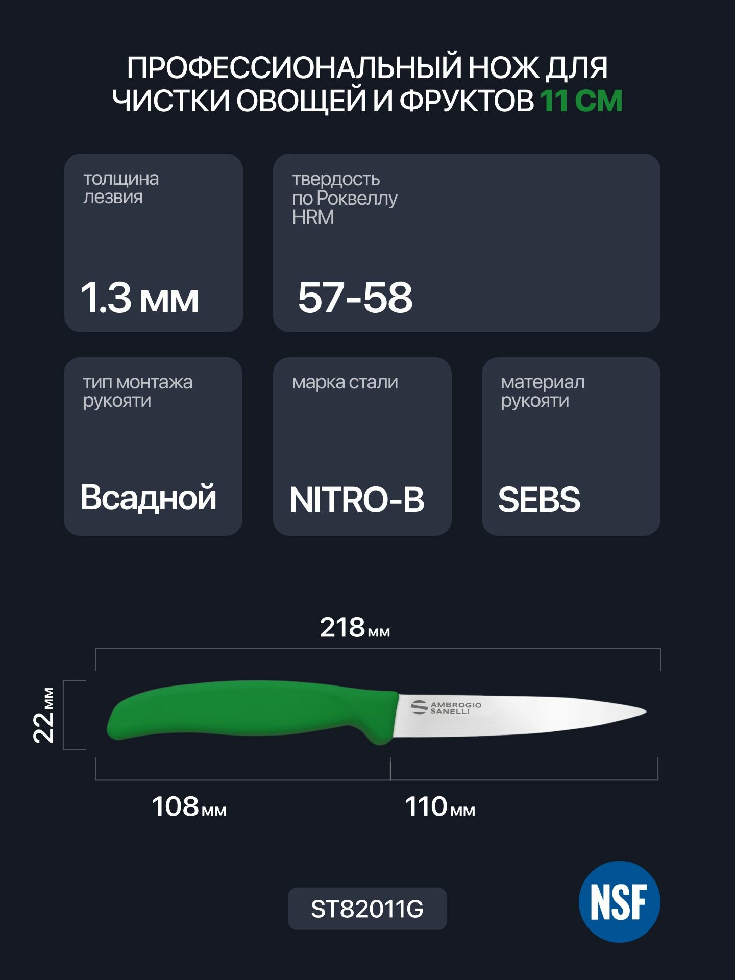 Нож для чистки овощей и фруктов 11 см профессиональный Sanelli Ambrogio ST82011G / зеленая ручка: сравнение цен, характеристики, фото, актуальное наличие и цены.