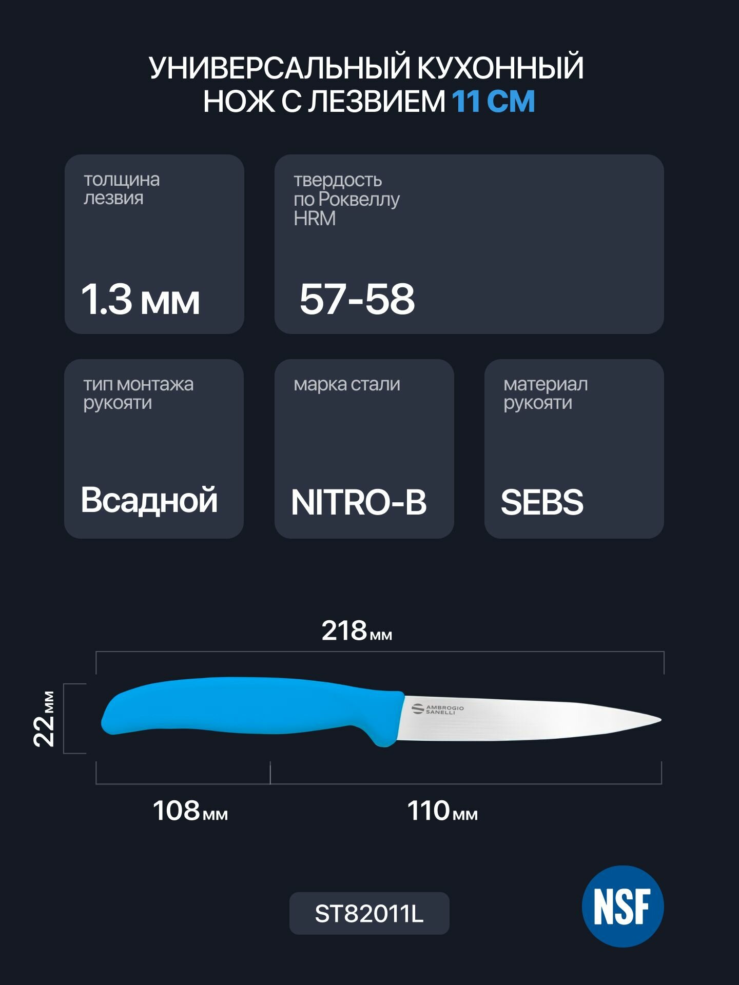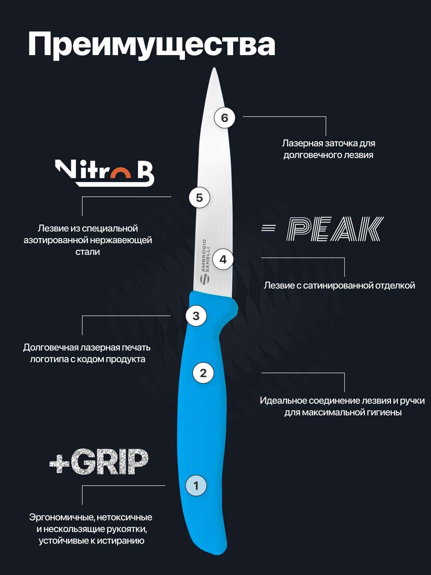 Нож для чистки овощей и фруктов 11 см профессиональный Sanelli Ambrogio ST82011L / синяя ручка: сравнение цен, характеристики, фото, актуальное наличие и цены.